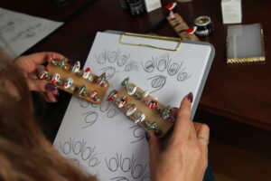 She starts designing a custom set by learning more about the client’s style and reason for wanting beautiful nails.