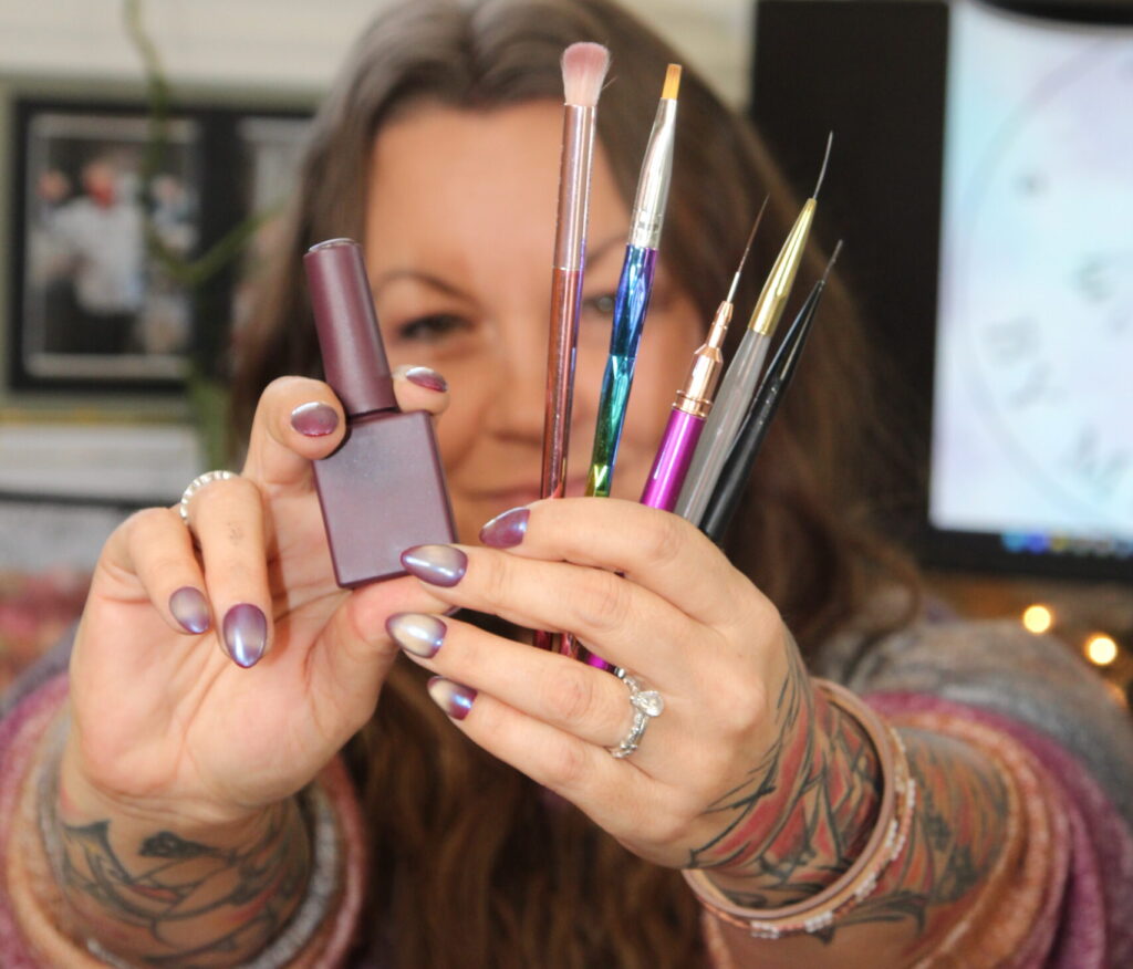 “It all started when I went out and bought a nail kit, some gel, and some polish. But I was never creative. I couldn’t paint or draw. But for some reason, once I had a nail and a tiny little brush in my hand, I was able to paint cute little designs,” she says.