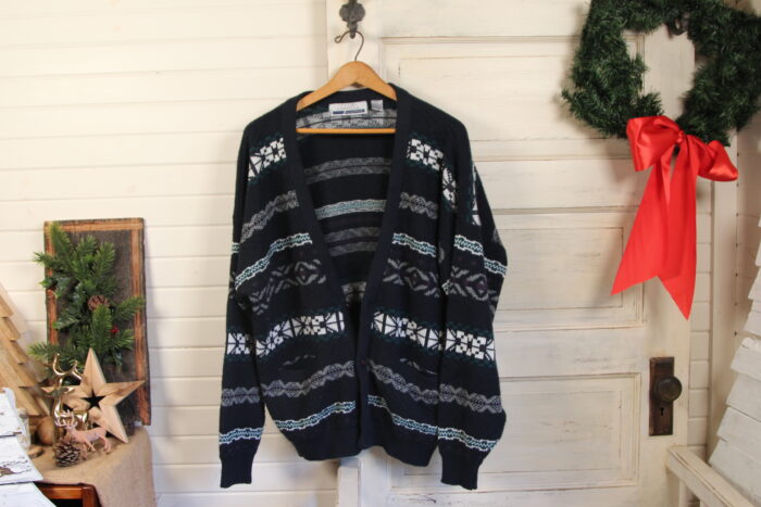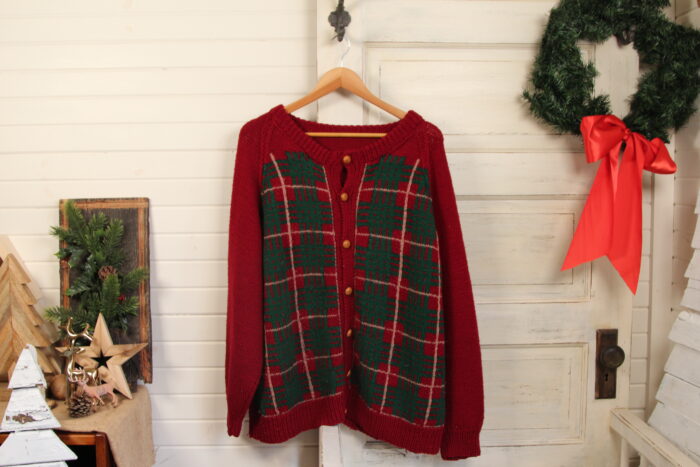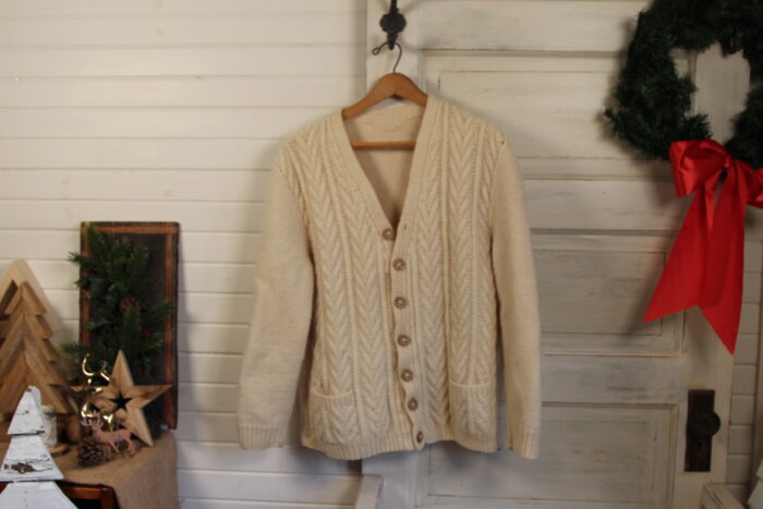 Vintage Handknit Cable Knit Sweater with Wood Buttons