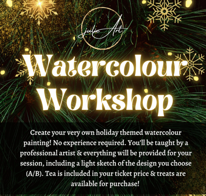 Event Ticket: julieArt HOLIDAY Watercolour Workshop at Mrs. Bell’s Tea Room