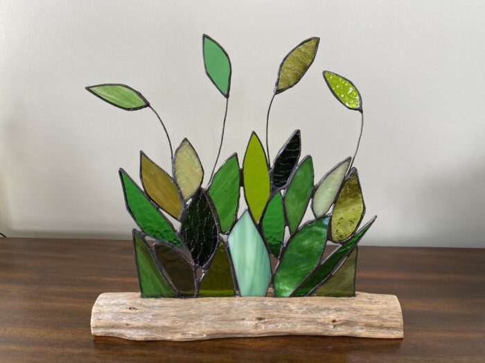 Falling Leaves Panel Inlaid on Driftwood Base – Shades of Greens Â