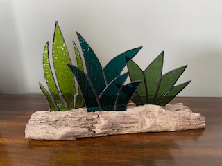 Stained Glass Cactus Succulents Centrepiece Inlaid on Driftwood Base  Â