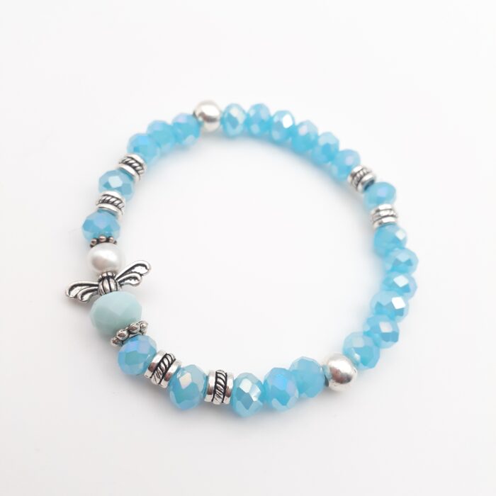 Angel Stretch Bracelet with Faceted Aquamarine Blue Crystal Beads