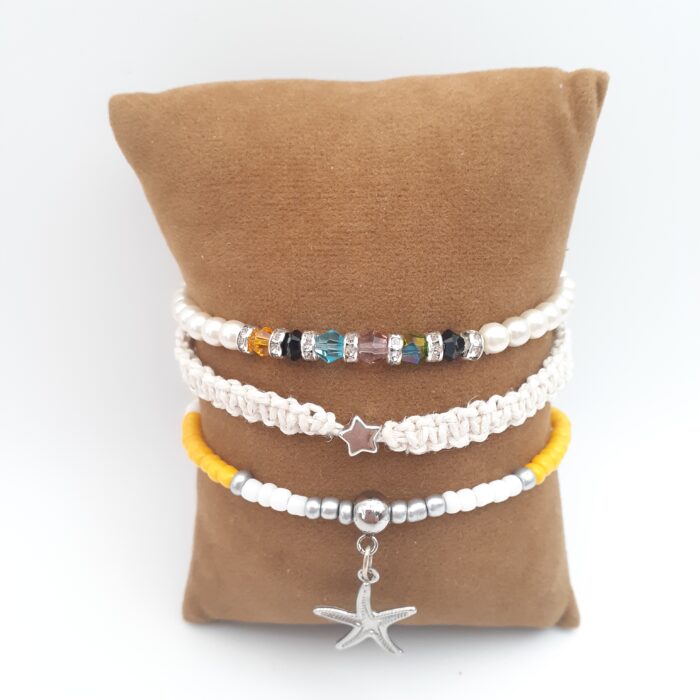 Stars Hearts and Frosted Colourful Beaded Adjustable Charm Bracelet