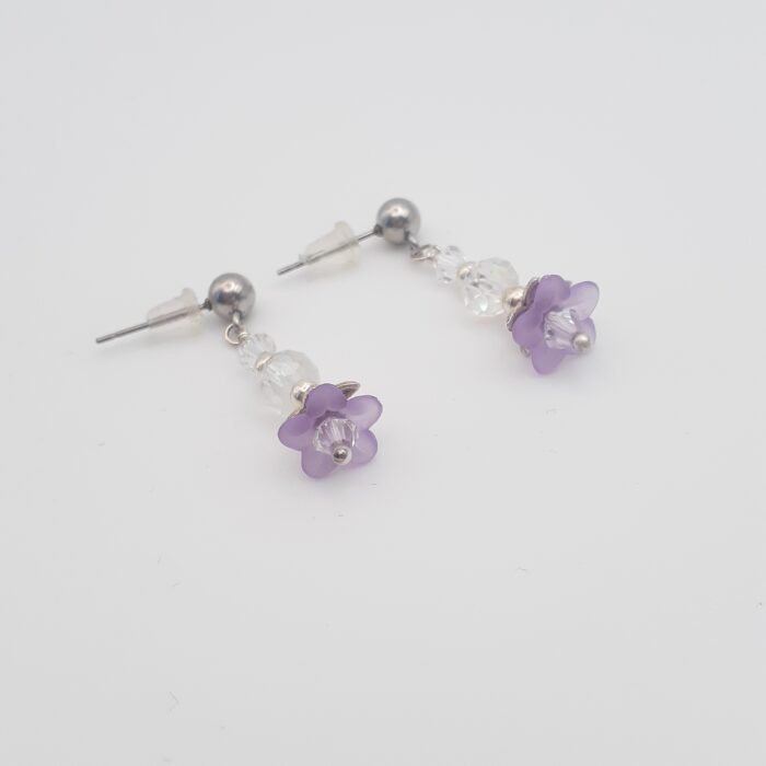 Tiny Lilac Acrylic Flower Post Stud Dangle Earrings in Stainless Steel