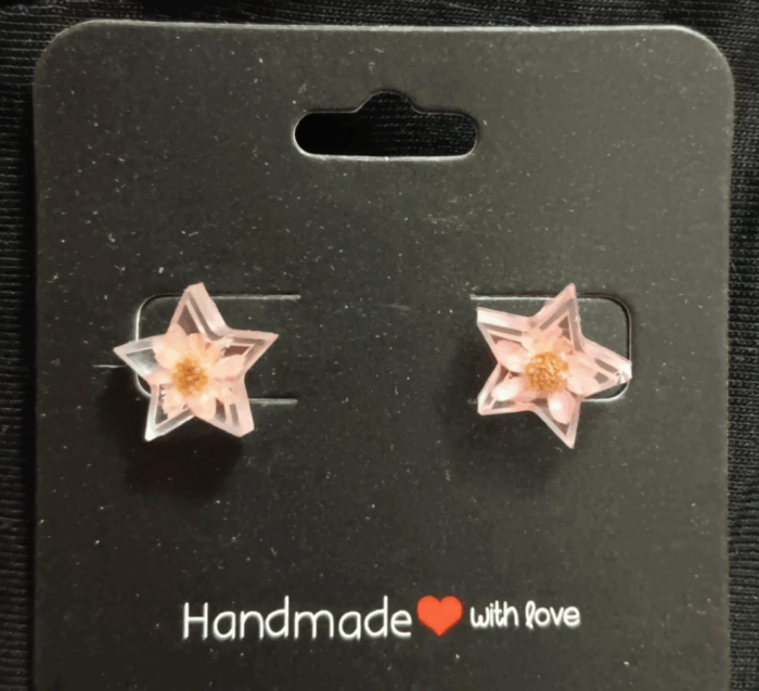 Star Earrings (Pink Flower)