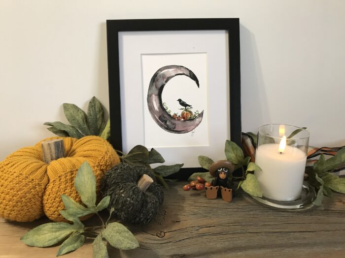 Crescent Moon With Crow