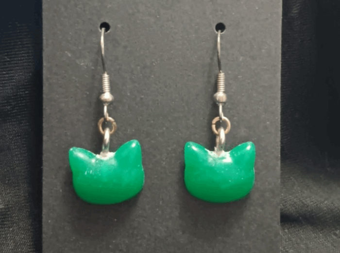 Cat Dangle Earrings (Green)