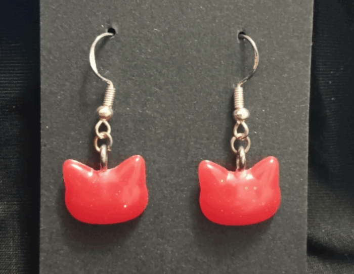 Cat Dangle Earrings (Red)