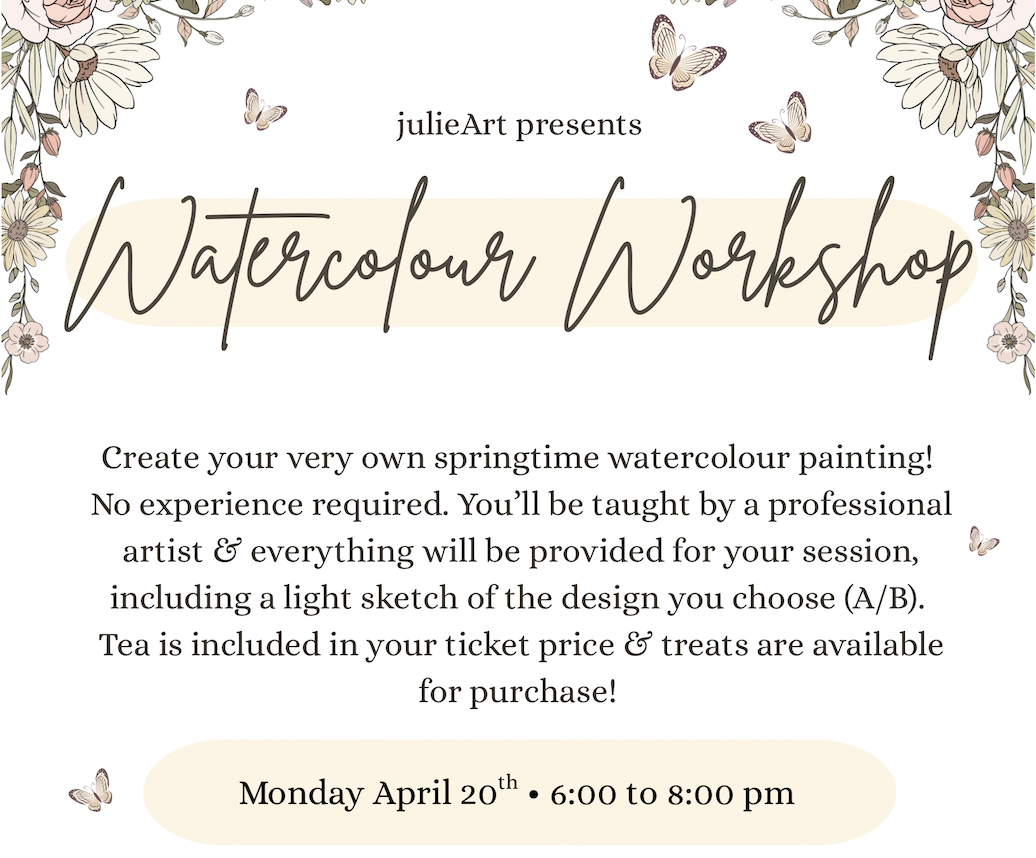 Event Ticket: Spring Watercolour Workshop at Mrs. Bell’s Tea Room (April 20, 2026)