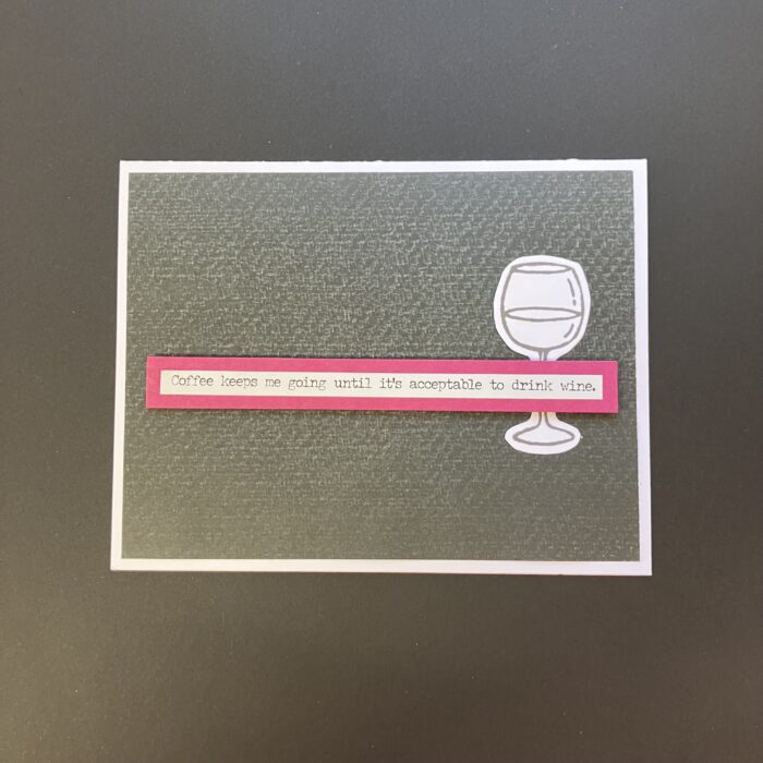 Coffee Keeps Me Going Greeting Card (text on white sticker with wine glass)