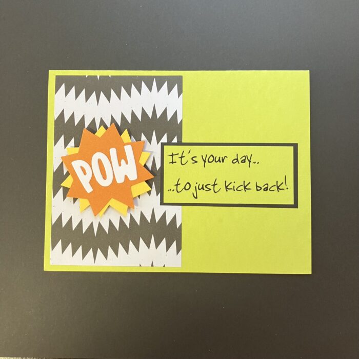 It’s Your Day To Just Kick Back Greeting Card (landscape, green with white squiggle background)