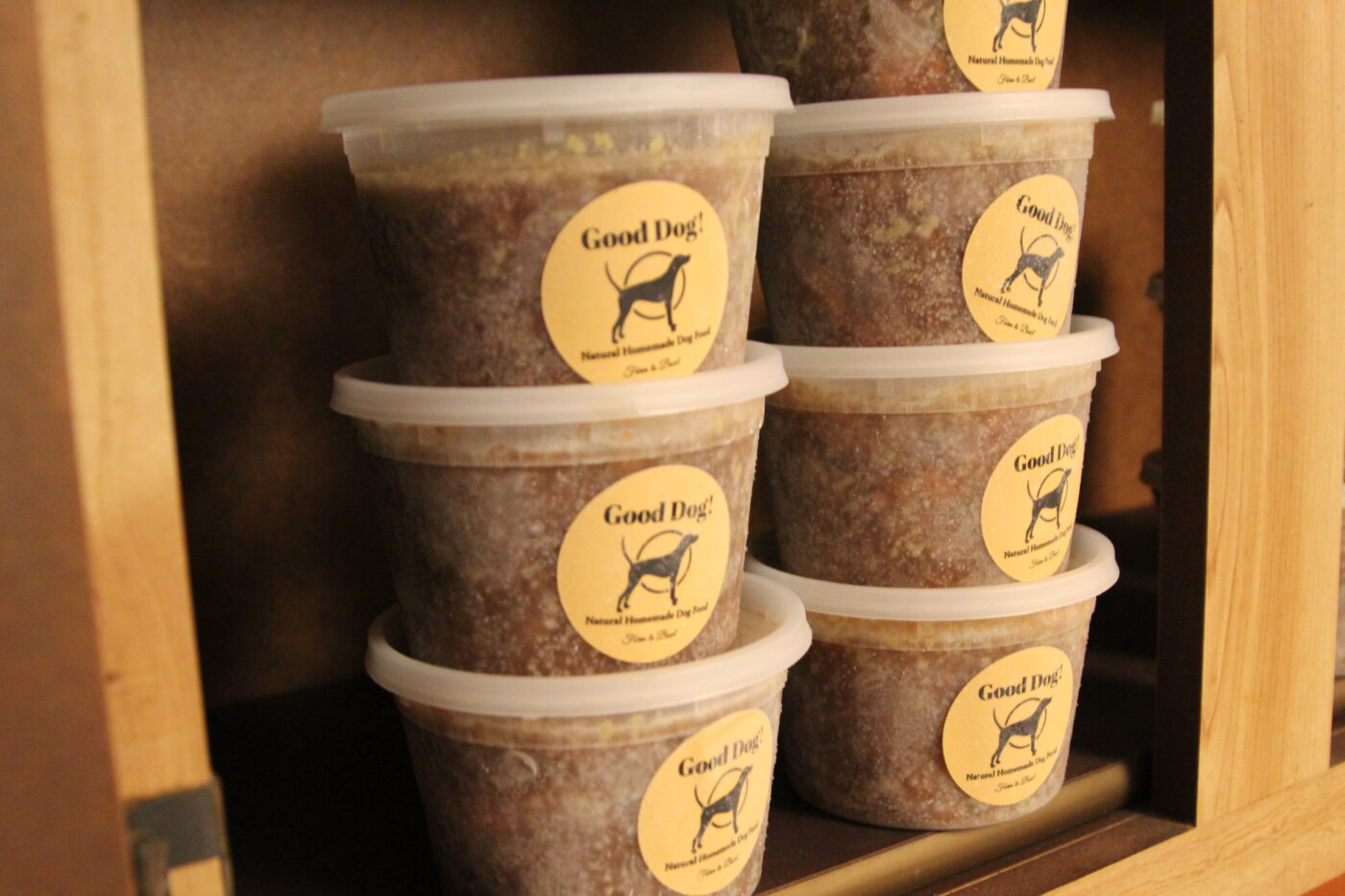 All-natural wet dog food made with wholesome ingredients and no artificial additives. Nutritious, flavourful, and easy to enjoy for dogs of all ages. Available in 3 size containers: 1/2 pound ($4.50), 1 pound ($8.00), or 2 pounds ($15.00).