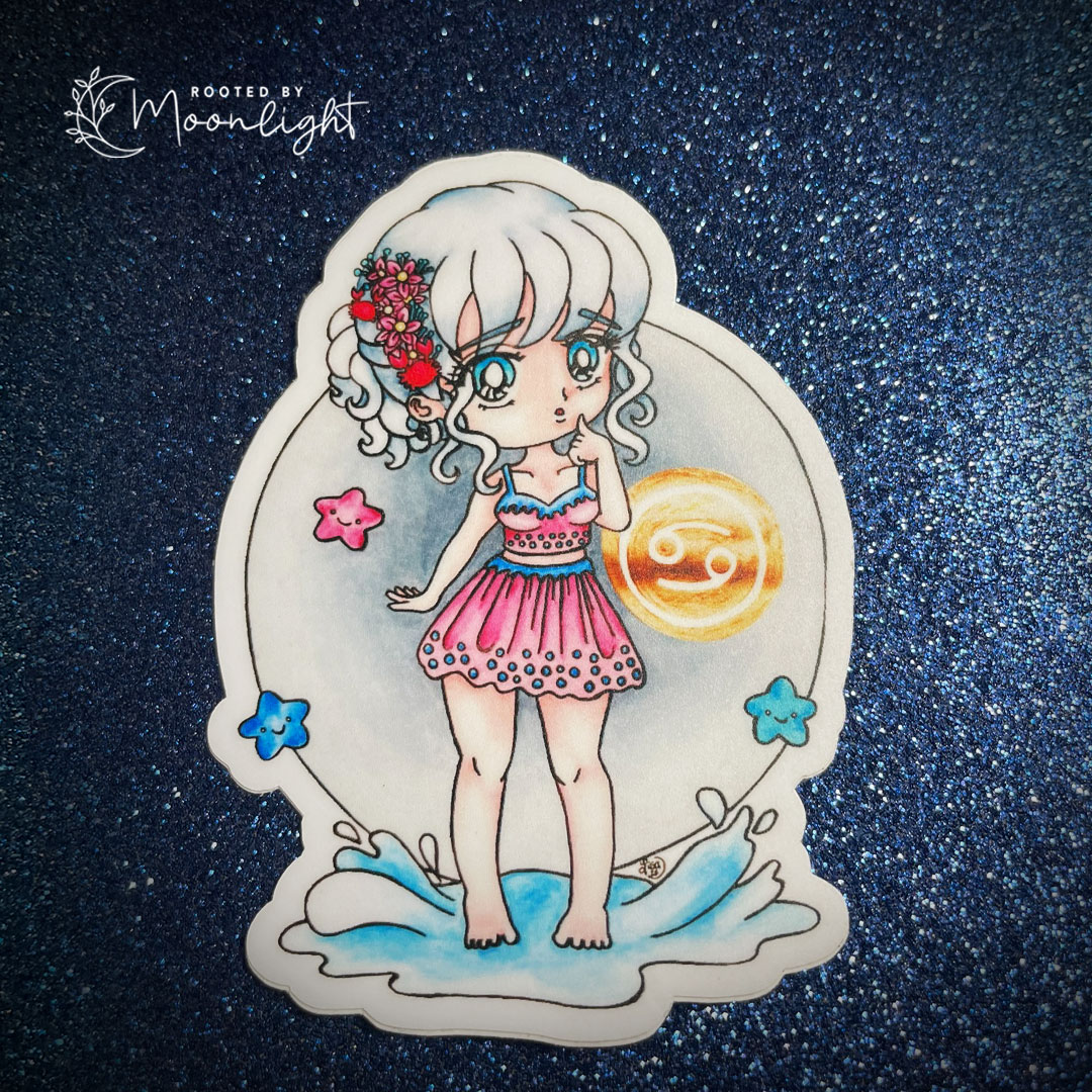 Cancer, (June 21 to July 22) a Cardinal Water Sign filled with intuition and heightened sensitivity. Cancer is the fourth sign of the zodiac, the first water sign and 4th of 12 in my Astro Girls series.