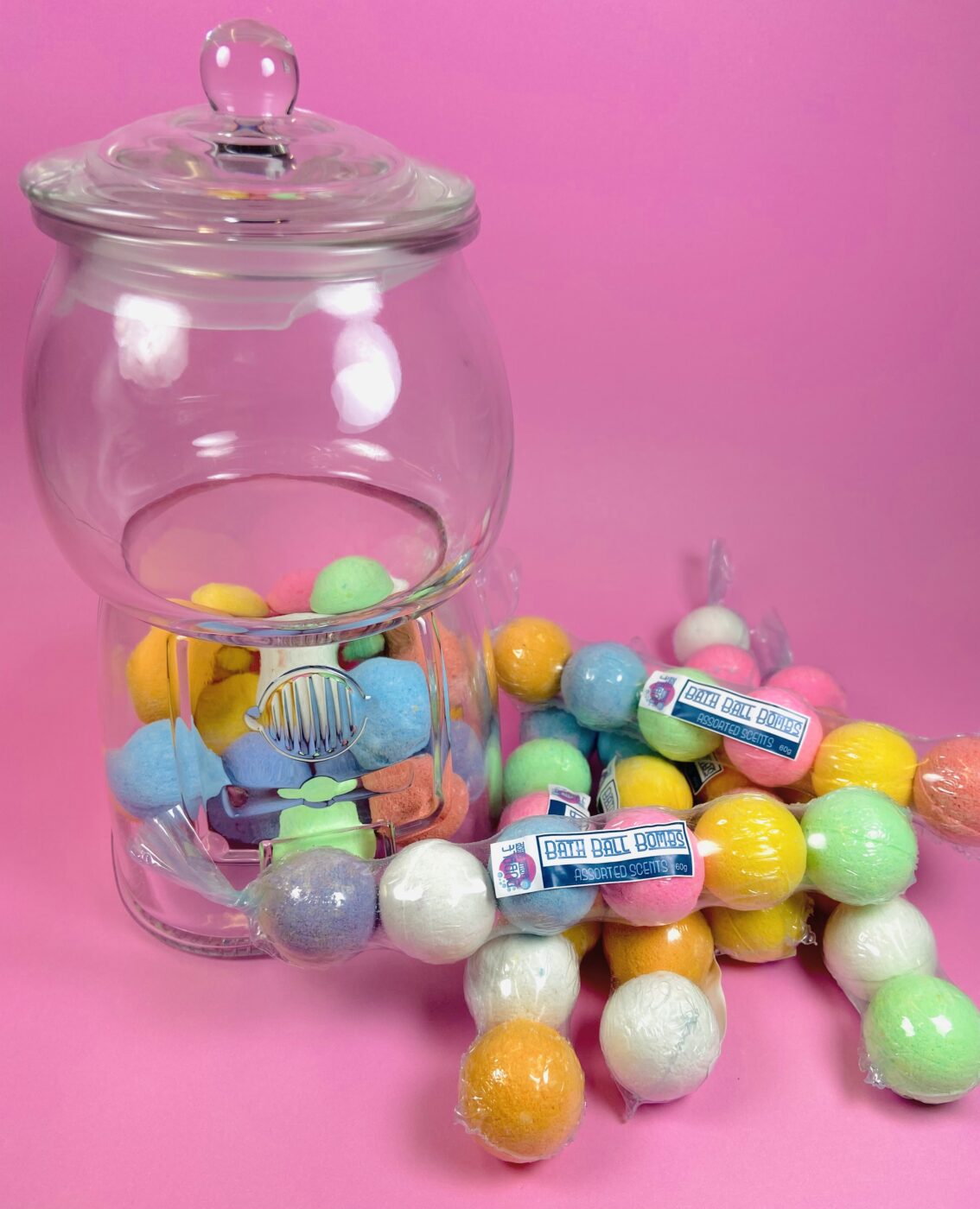 An assortment of 6 gumball shaped bath bombs with colour surprise. Perfect size for our younger customers who like to experiment with colour mixing or for grown ups who enjoy a warm pedi soak.