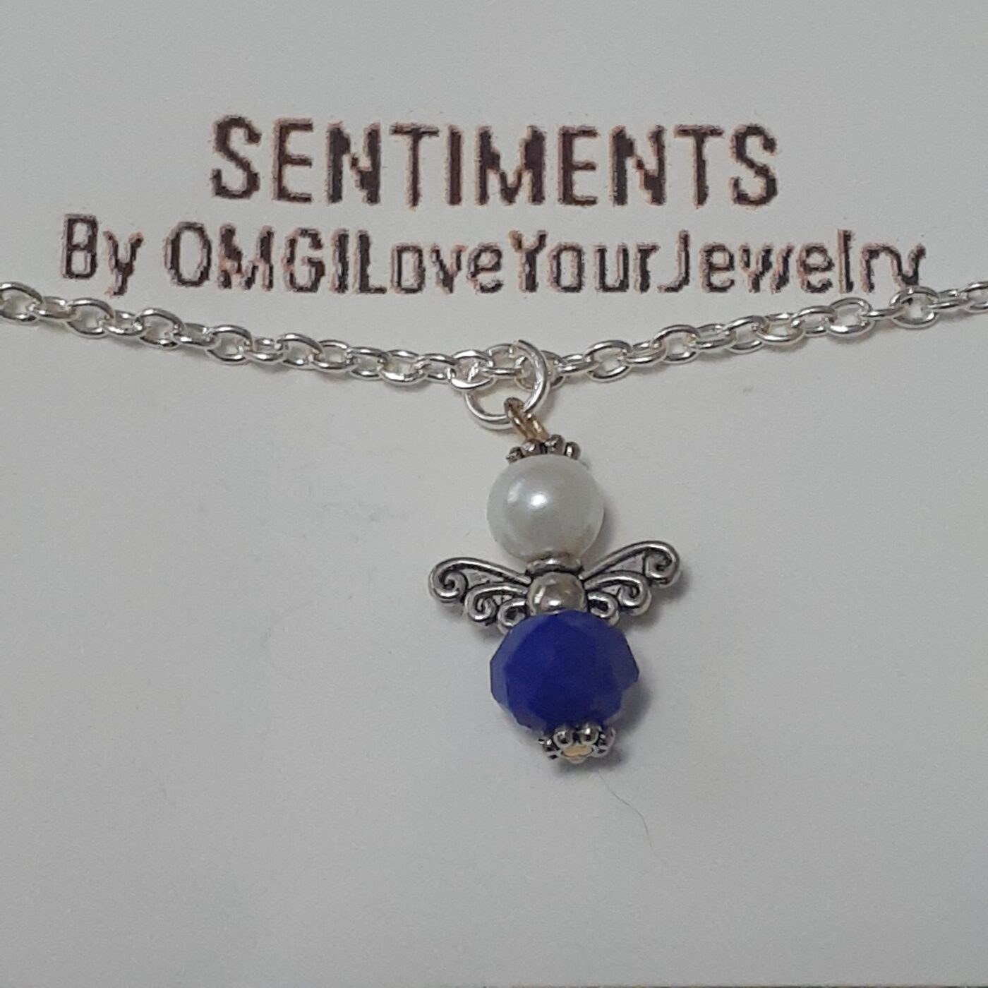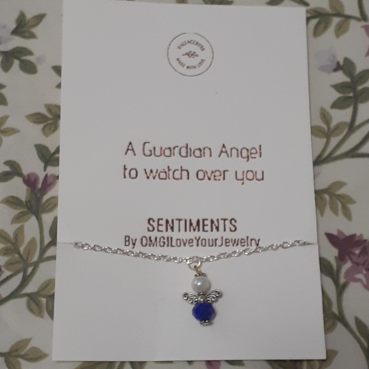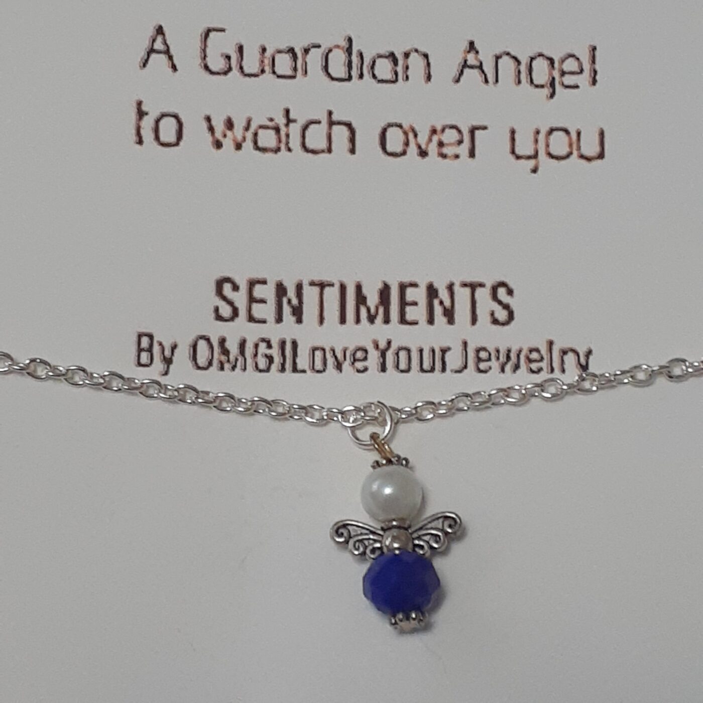 Sentiments Collection ~ Sterling silver Guardian Angel Necklace with an angel handmade by me with pearl and Czech crystals. A guardian angel to watch over you. The sterling silver necklace measures 18.5 inches long but I can make it to suit. Please contact me.