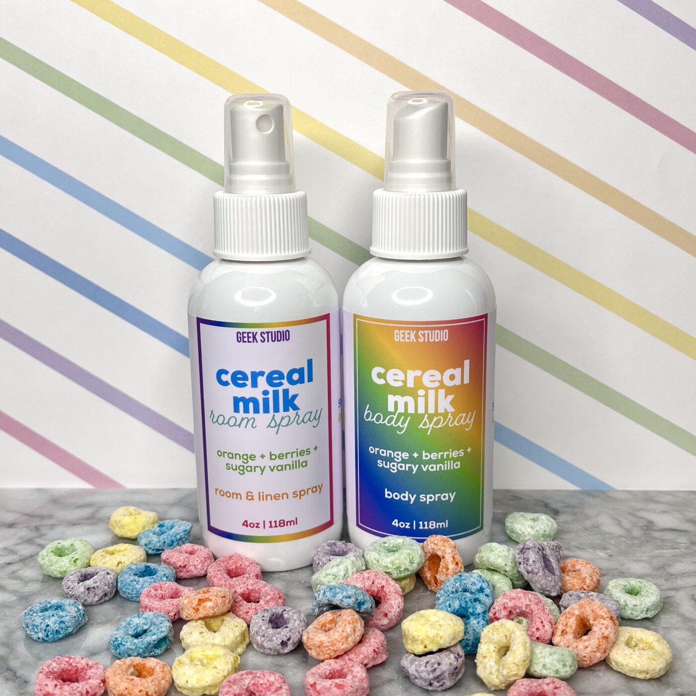 The nostalgia of childhood in a bottle. Take your memory back to Saturday morning cartoons and sugary cereal with a spray that smells just like fruit loops. This is the our most popular scent!