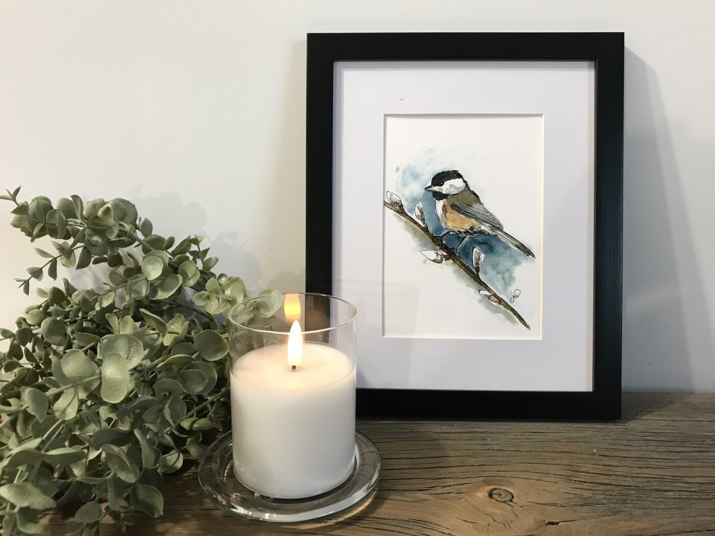 This cute little bird would make the perfect addition to any room or a touching gift for someone you love. Watercolours and ink pen.