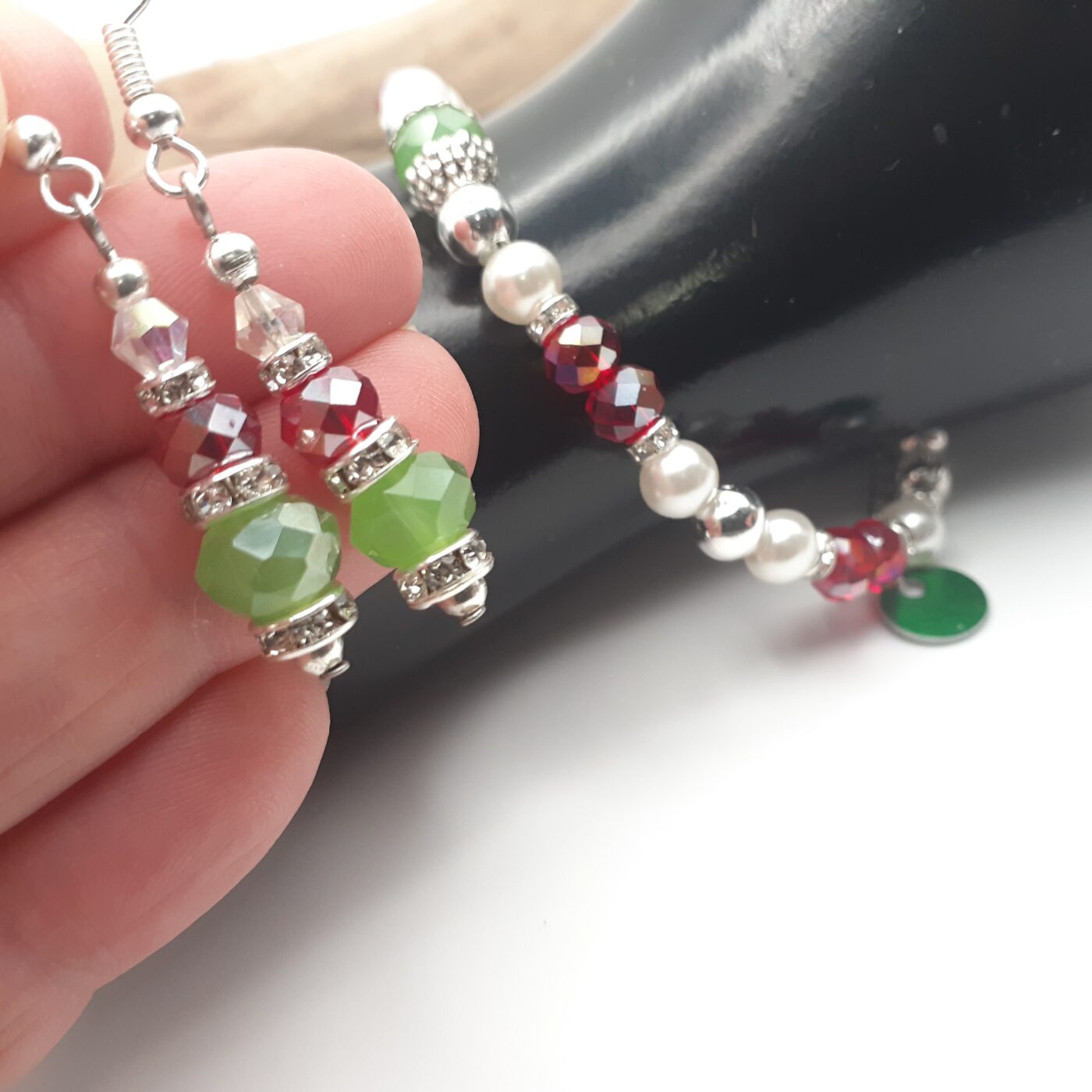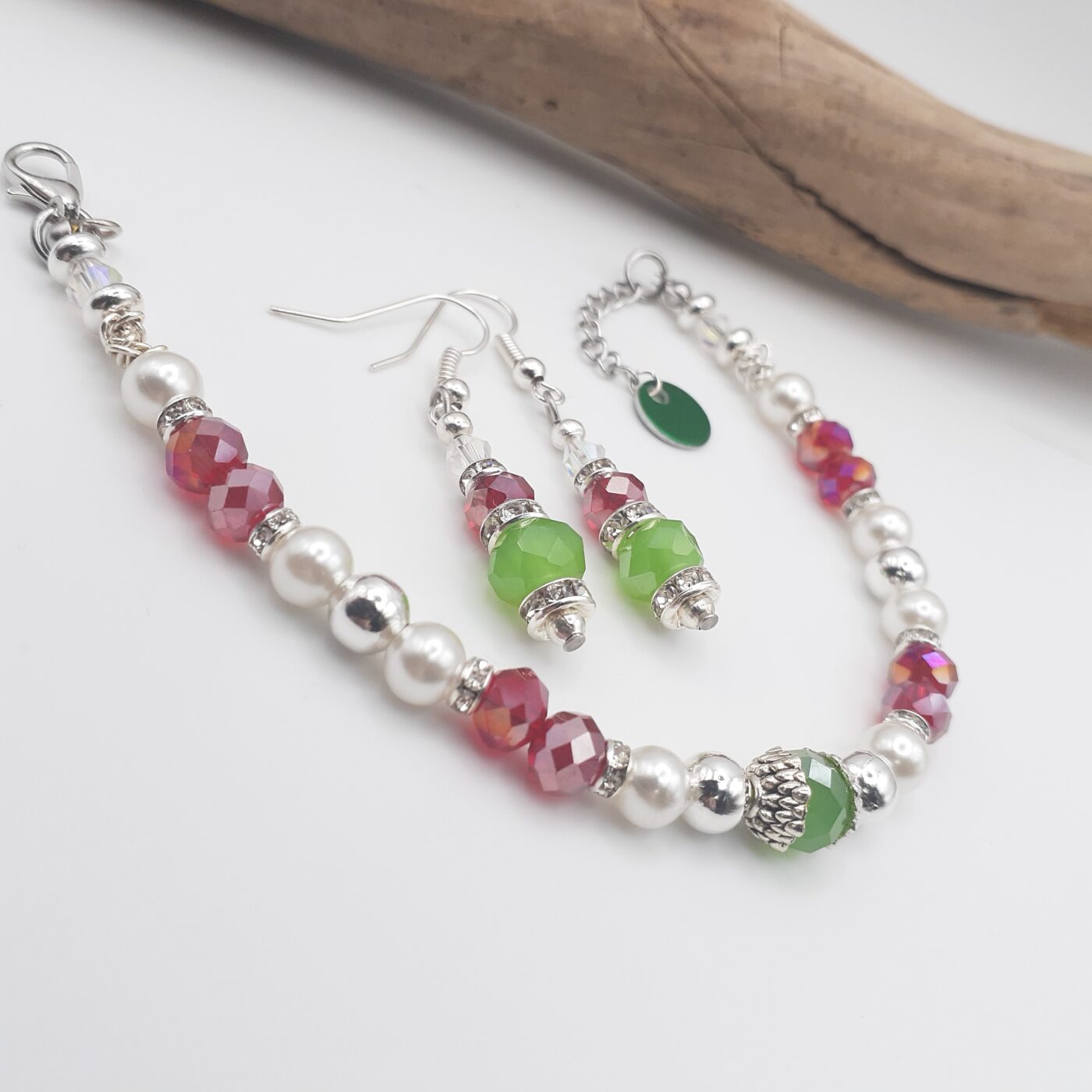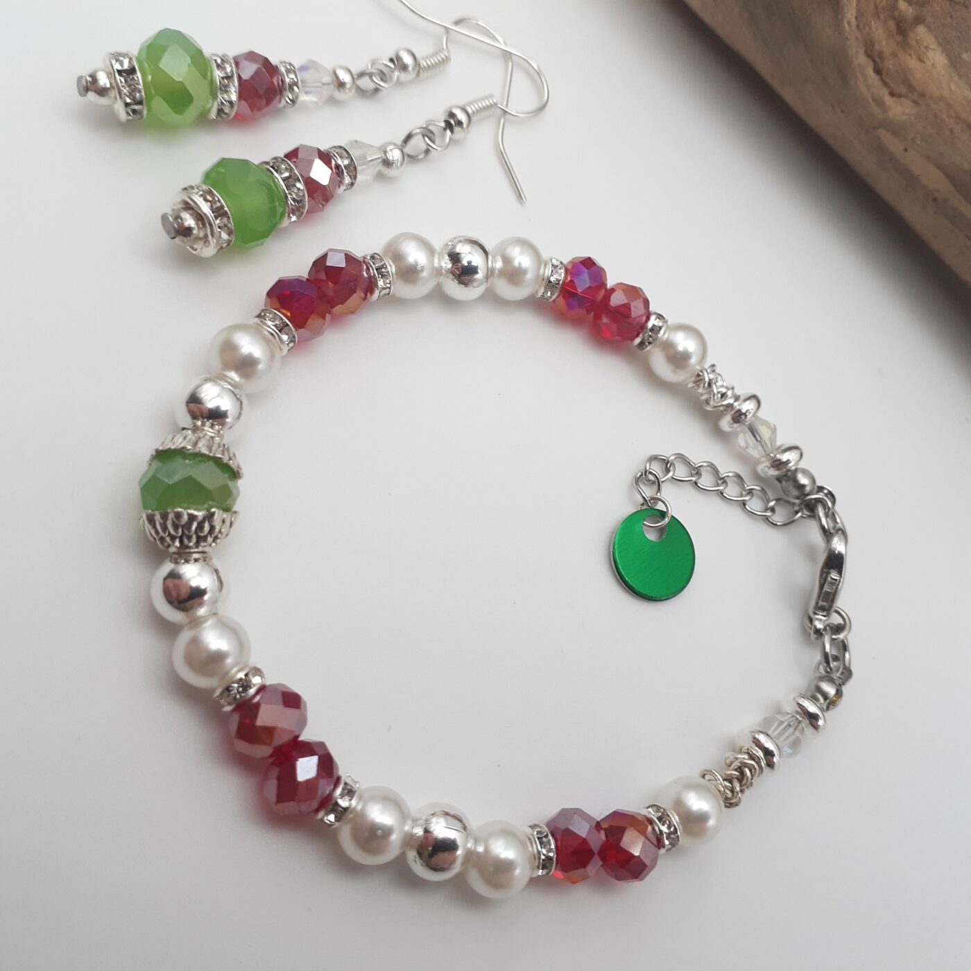 Christmas Colours Crystal Beaded Bracelet and Earrings set