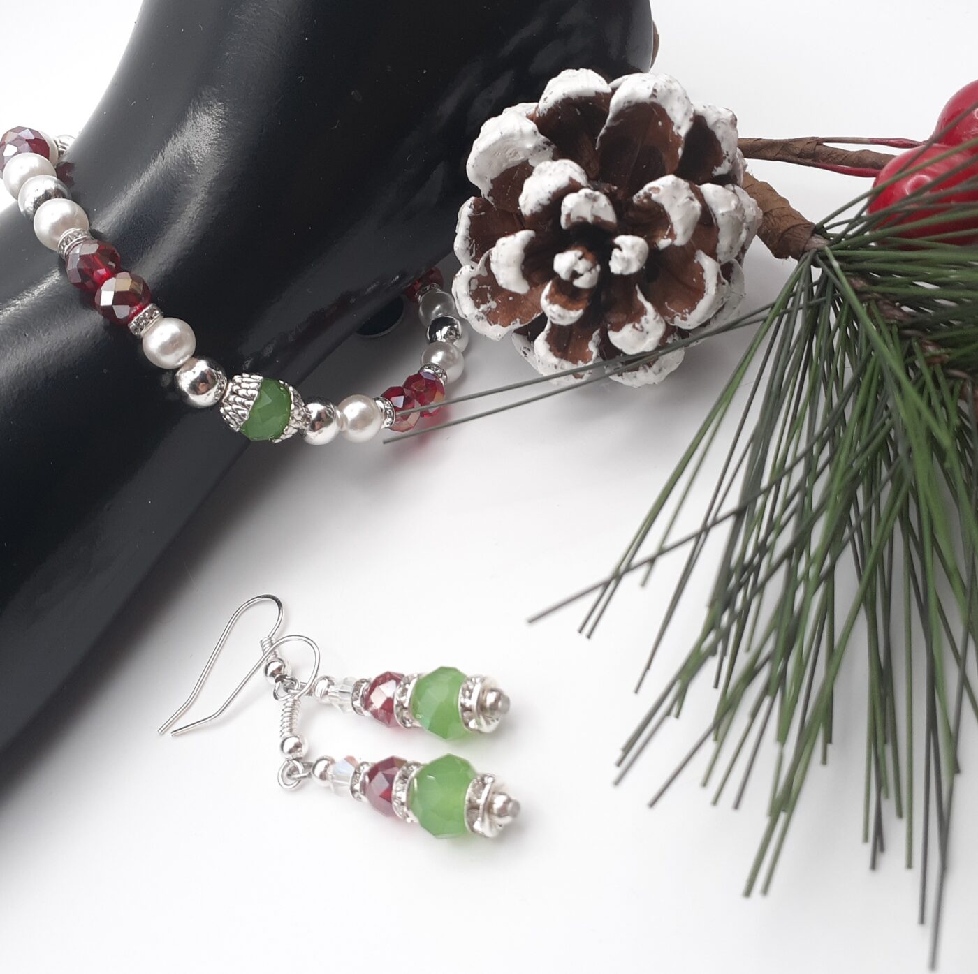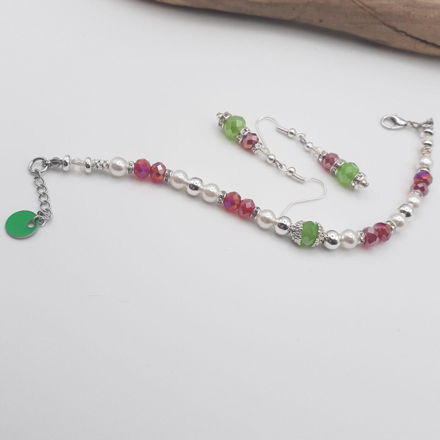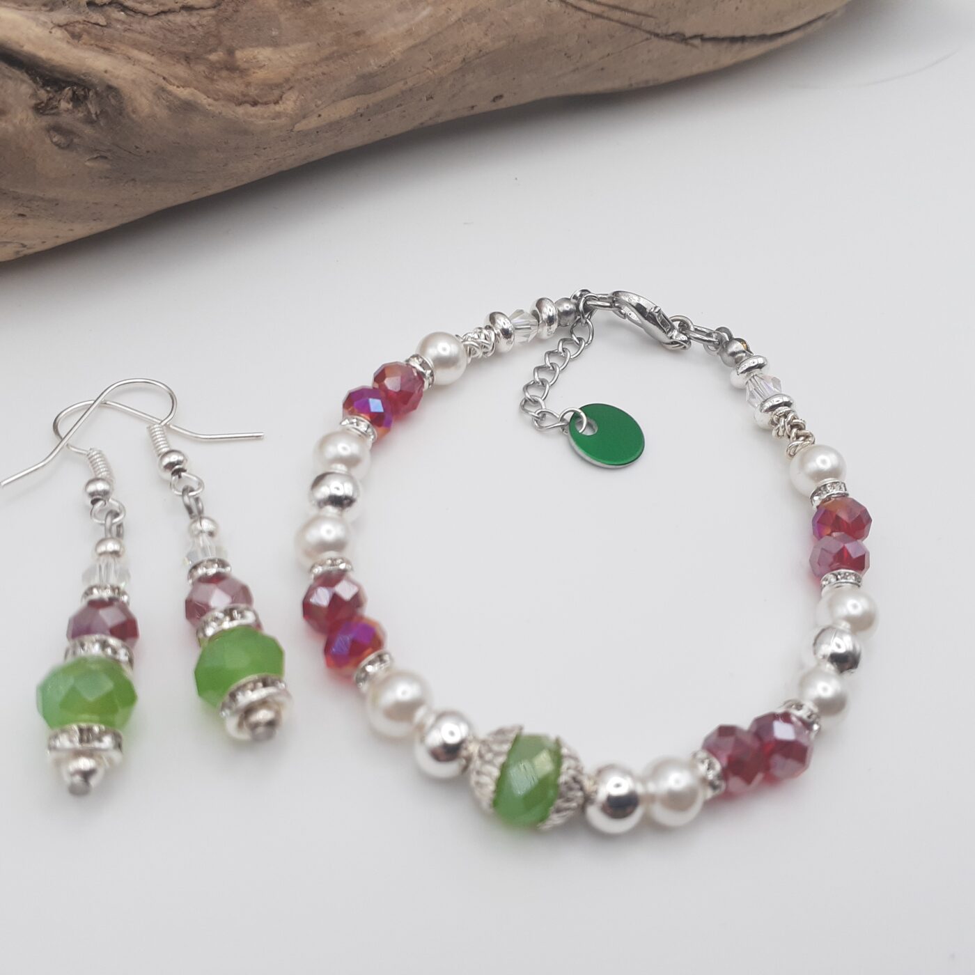 Christmas Colours Crystal Beaded Bracelet and Earrings set