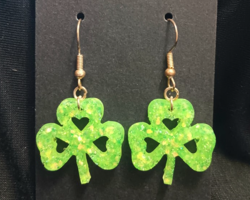 These cute, dangle earrings have a fun and playful style. Handmade resin with metal posts.