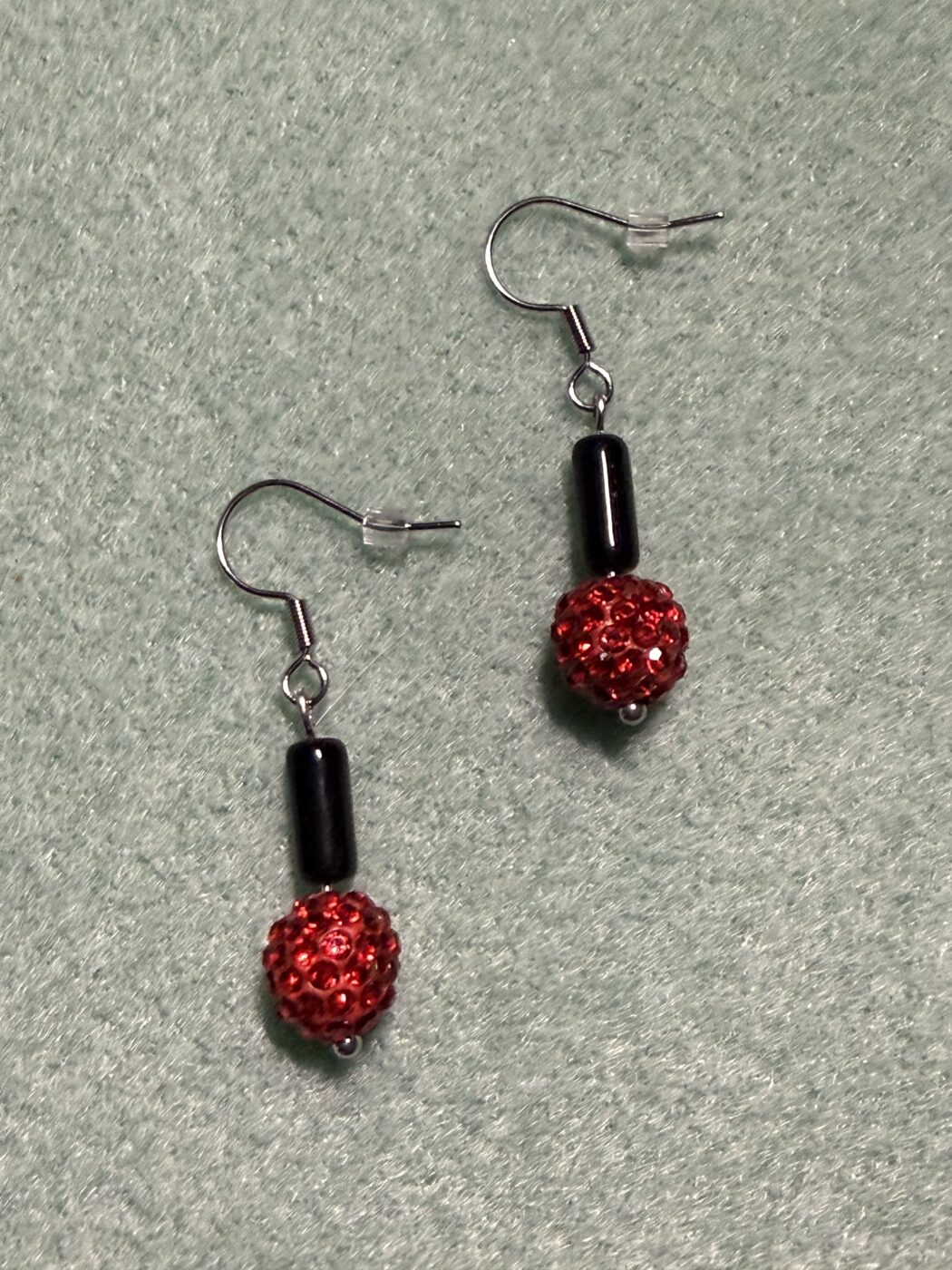 Made with stainless steel, precious stones, and mini crystal balls in red and black. Measures 1.75″ long.
