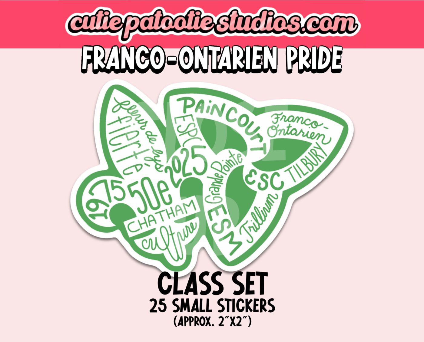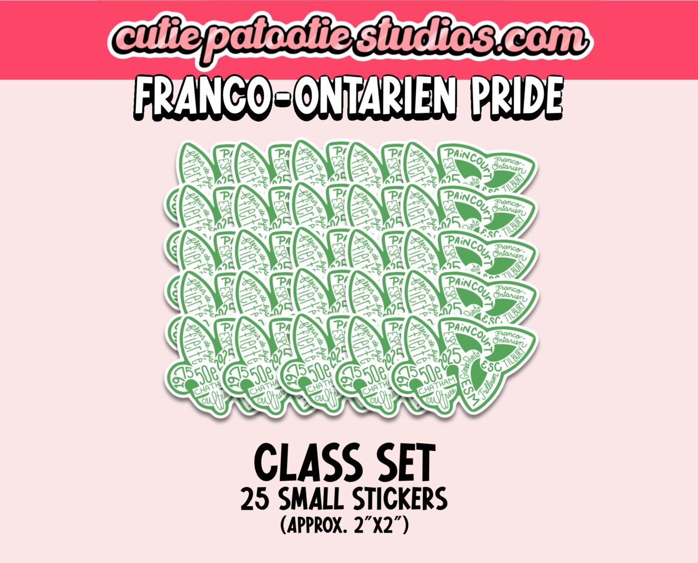 Nous somme, nous serons! Celebrate the 50th anniversary of Journée du drapeau franco-ontarien with a CLASS SET of 25 small vinyl stickers made specifically for all of the French Cuties of Chatham-Kent!