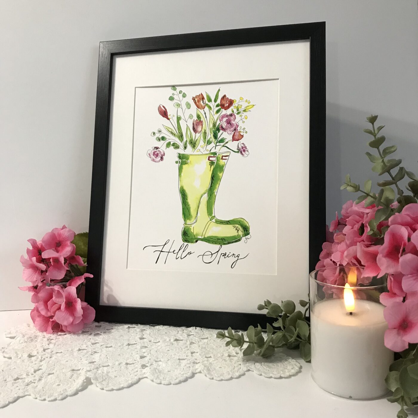 Brighten your space with fresh new Spring decor to welcome in the season. Watercolours and ink pen.