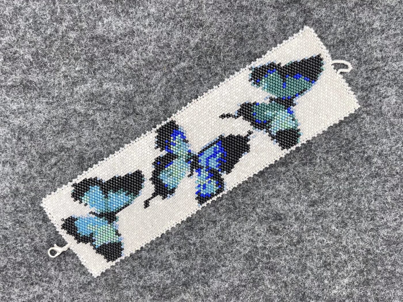 Iridescent Butterflies – This beaded bracelet measures approximately 7″ x 2″