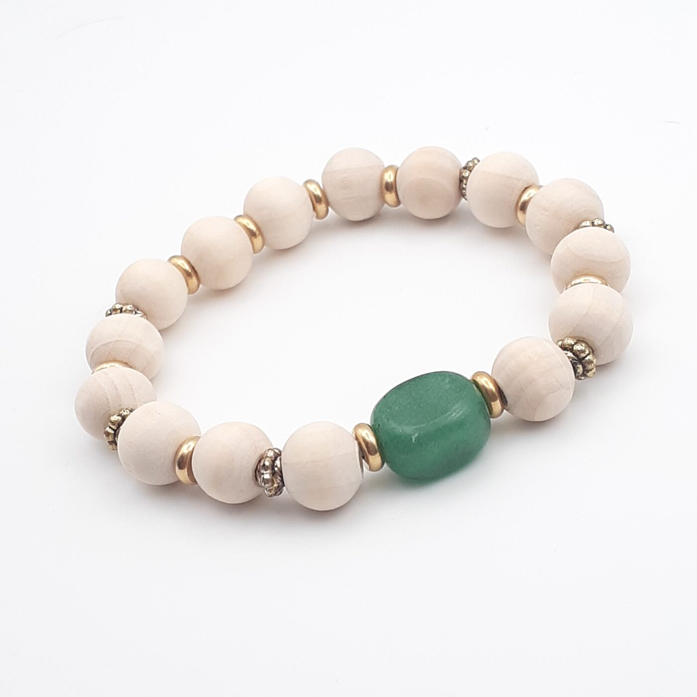 Jade Green Focal Bead Natural Wooden Beaded Stretch Bracelet