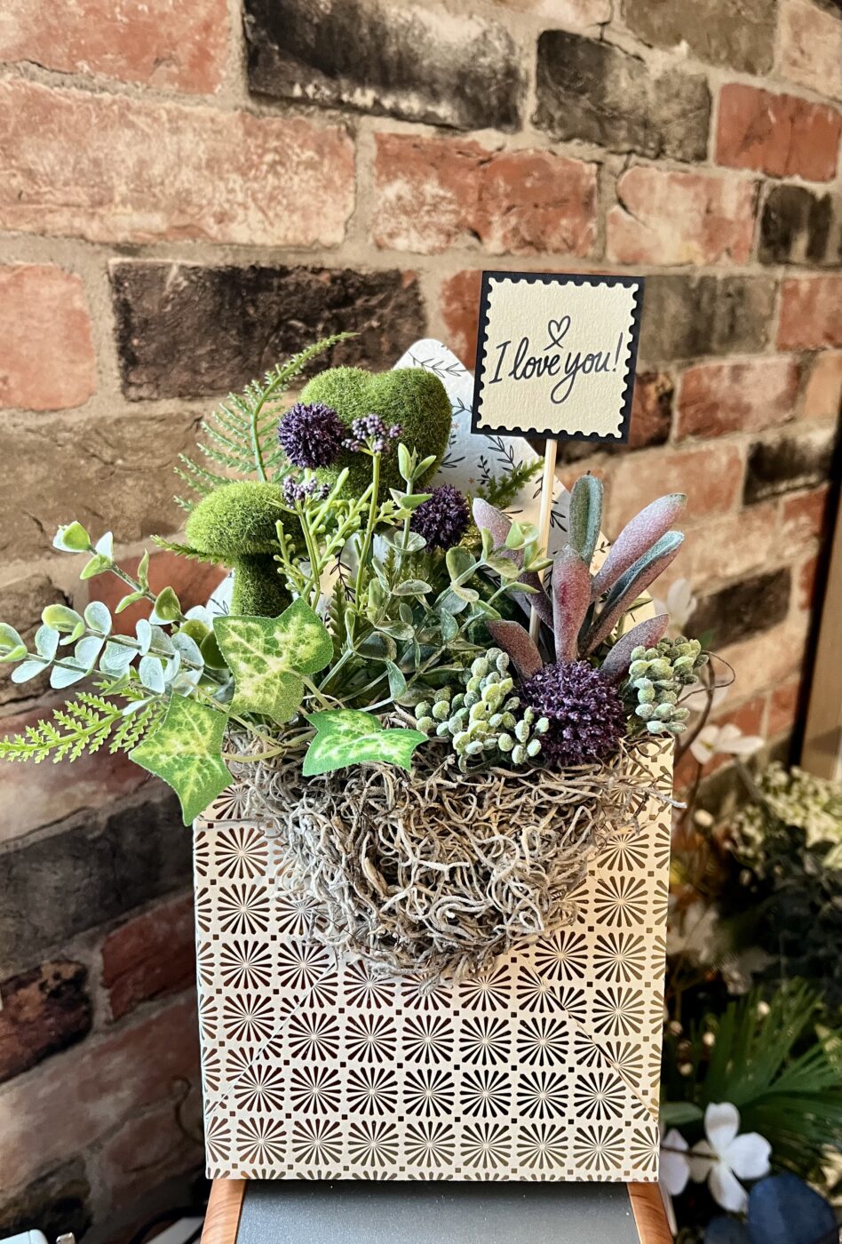The idea for the Love Letter Collection grew from my love of old letters, pretty paper, and fun floral designs. Each unique envelope “pocket” is made from premium paper and filled with a rich variety of faux floral and greenery, which keeps their message of love long-lasting. Perfect for a breath of fresh décor or as a thoughtful, one-of-a-kind gift for Valentine’s Day, birthdays, or simply thinking of you.The Love Letter arrangement has an integrated stand allowing it to sit upright on a desk, shelf, table or window ledge.