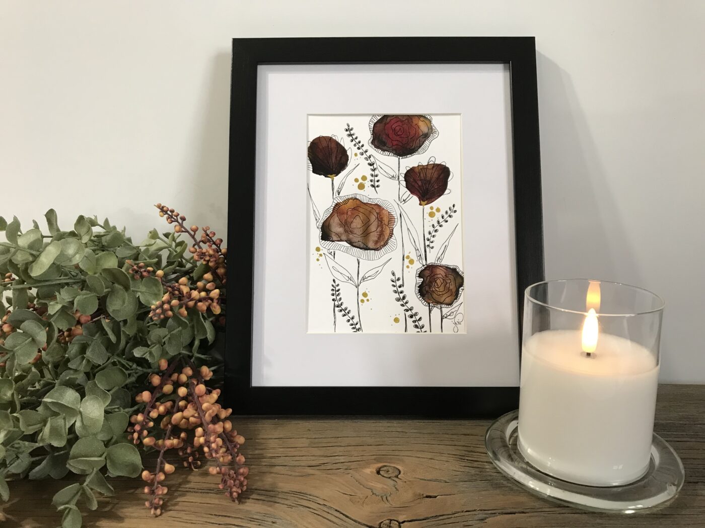 - Framed size (classic black frame; with matte): 8″ x 10″ ($30)
