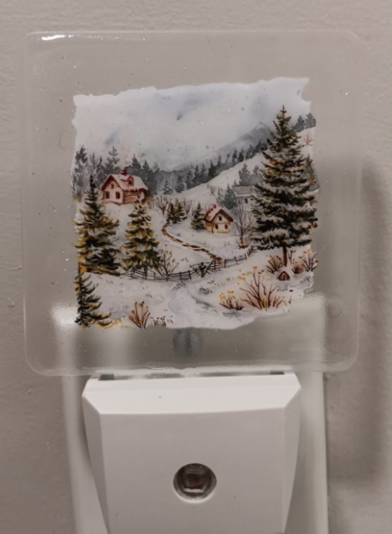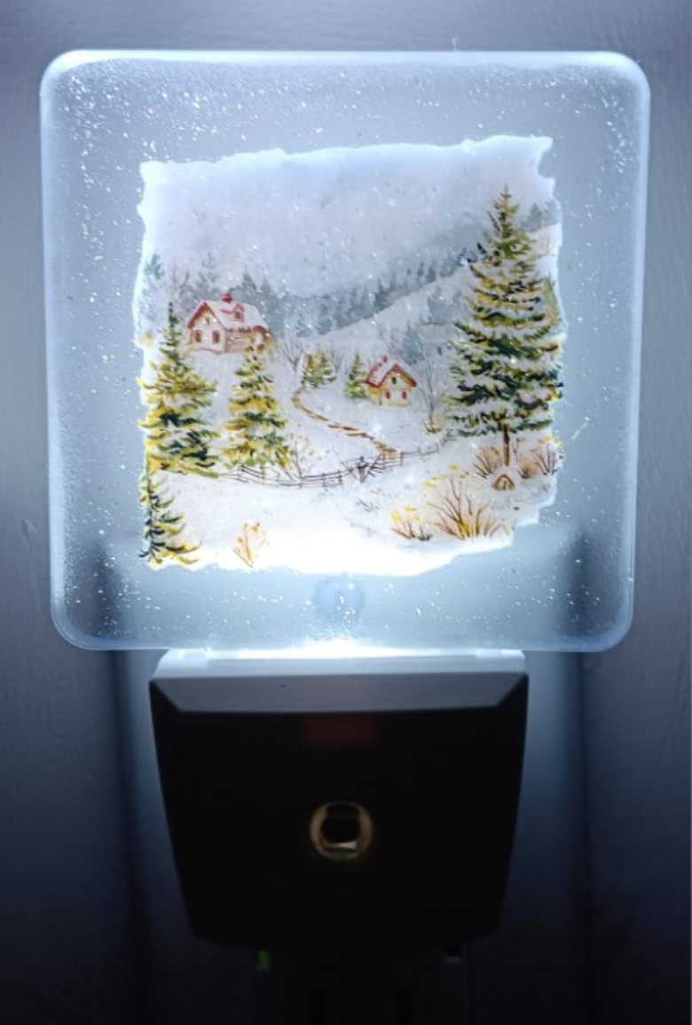 Beautiful, handmade. LED nightlight with a sensor to activate when the space is dark enough. A stunning decorative piece for your home or makes a beautiful gift.