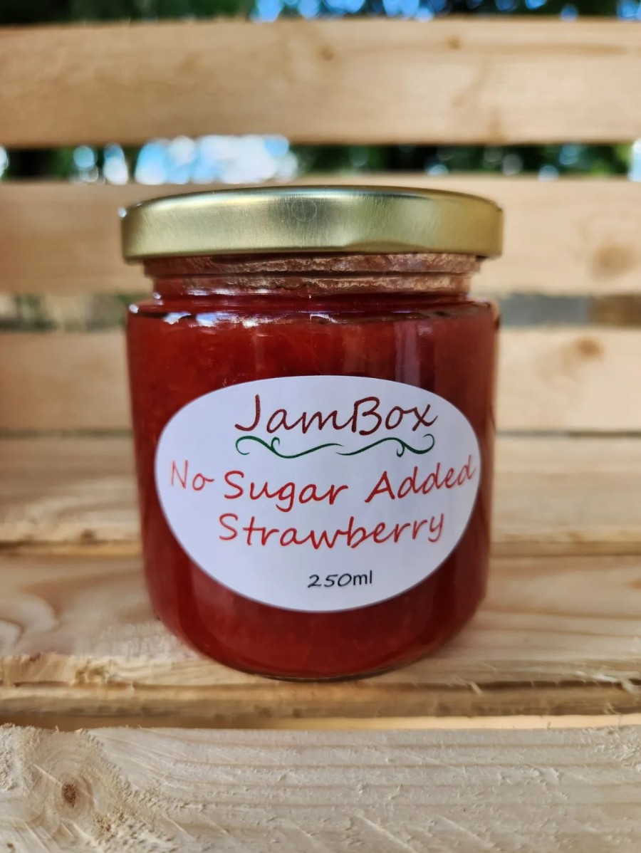 Made with strawberries, sugar-free pectin, a little pure apple juice and a touch of stevia. The shelf life of our no sugar added jams is only about 3-4 weeks once opened and they must be refrigerated once opened, left unopened they will be good up to 10 months but could slightly change in colour over time but that won’t affect the taste.
