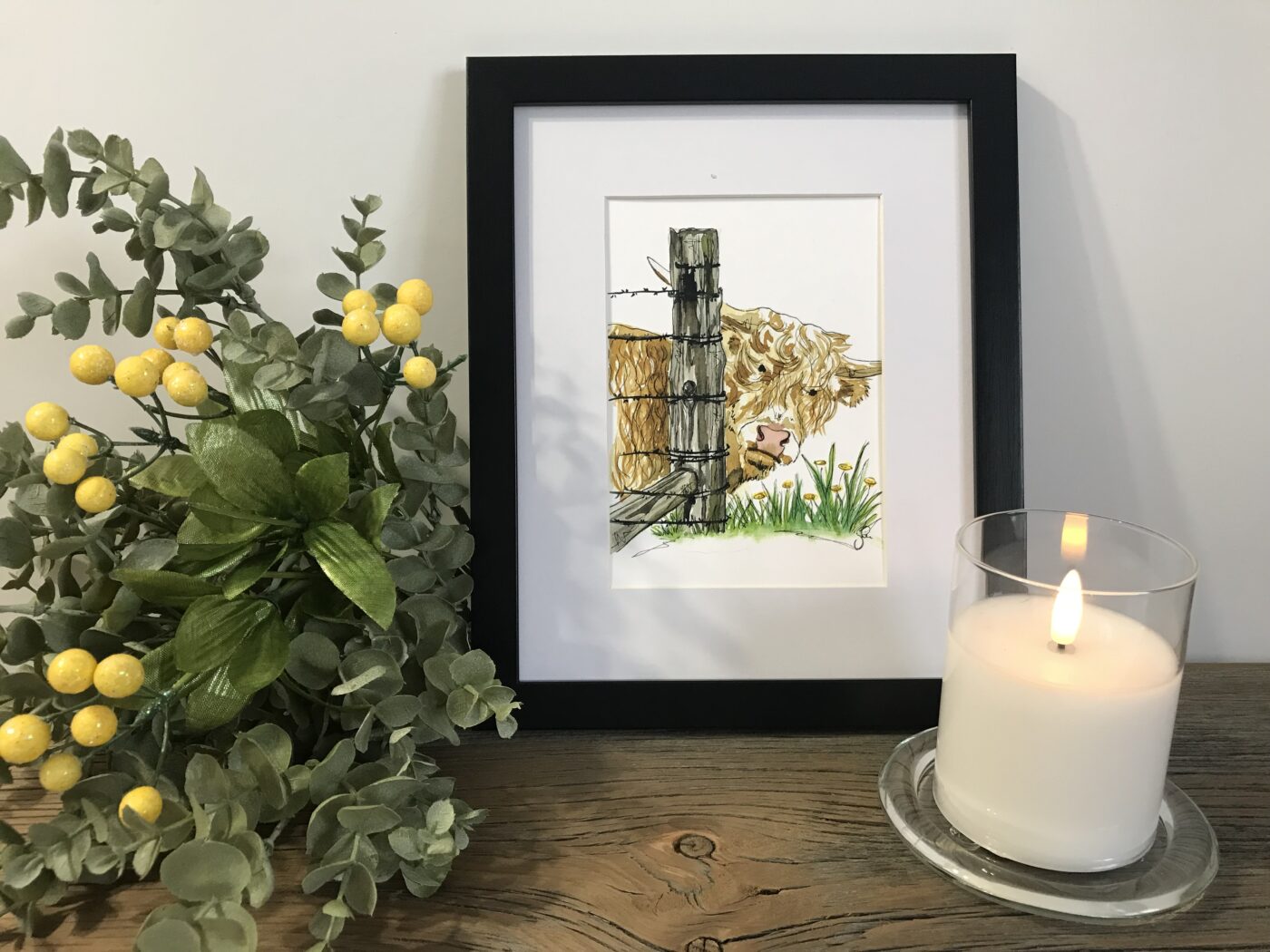 My rural roots inspired me to do this farm series. The “in your face” animals bring lots of laughter and smiles. Watercolours and ink pen that I have printed on 100lb quality paper.