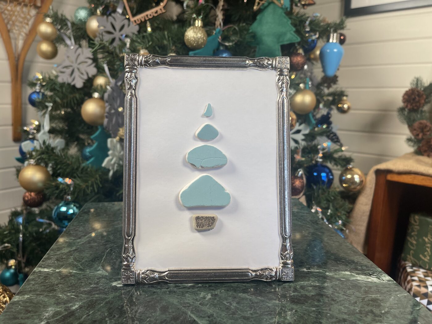 This beautiful festive piece is made of seaglass from Lake Erie that fit so perfectly together to form this cute little tree. Perfect way to add a festive touch to any room.