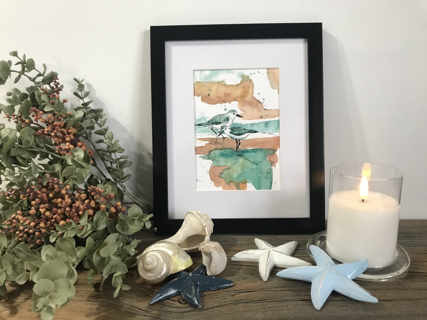 Who doesn’t love going to the beach and soaking up the sun! I have water coloured several little sandpipers and seagulls perfect for your cottage or set them in your office to reminisce.
