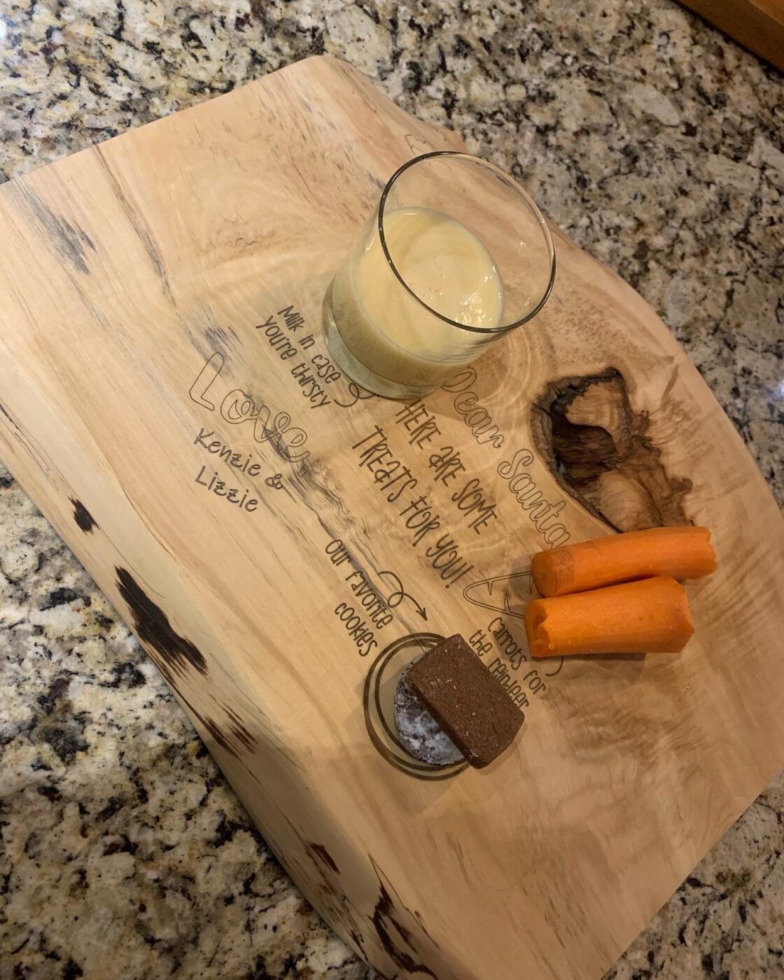 Make Christmas Eve extra special! This festive charcuterie board is perfect for cookies, milk, and treats for Santa — and a few carrots for the reindeer too. A fun, functional keepsake that can be used year after year. Wood type and size may vary, making every piece unique.