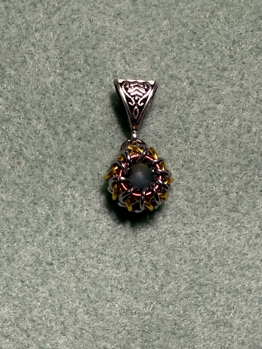 Dragons eye, handmade, stainless steel, chain-male pendant with precious stone centre.