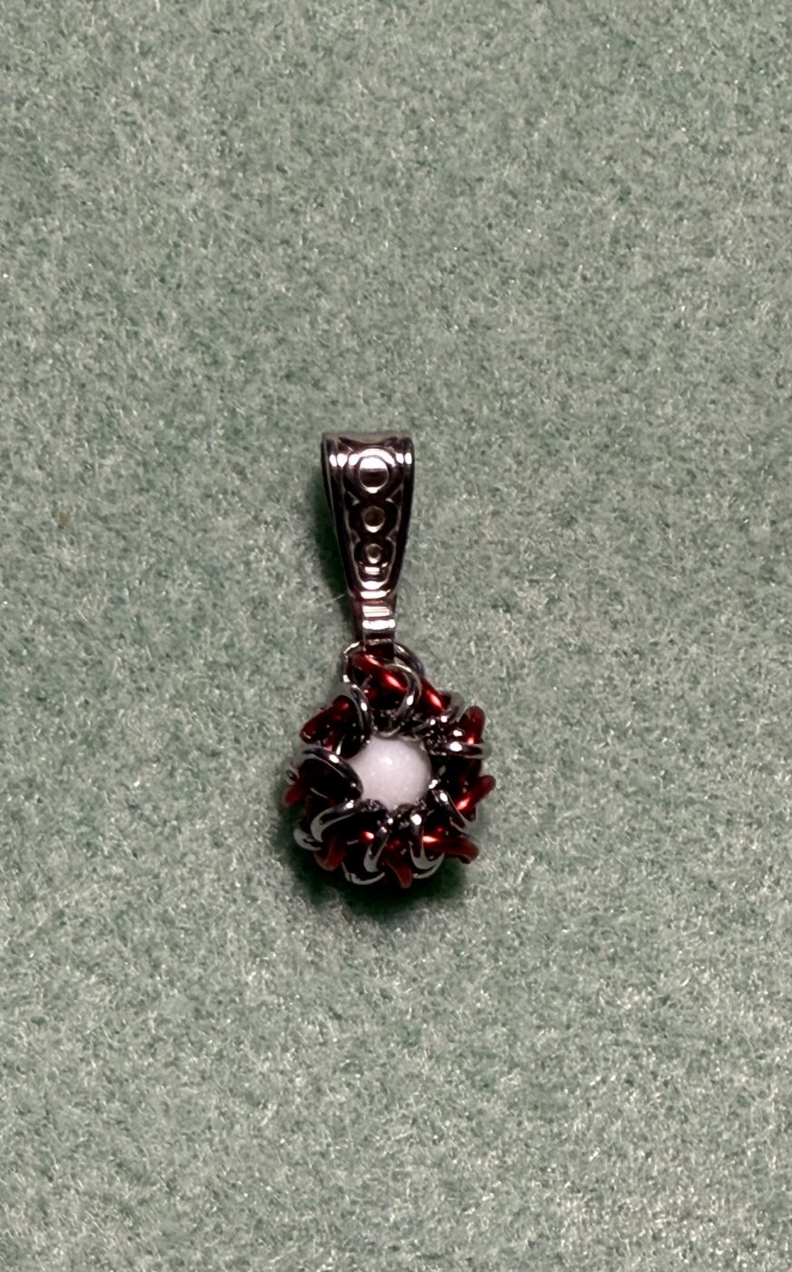 Dragons eye, handmade, stainless steel, chain-male pendant with precious stone centre.