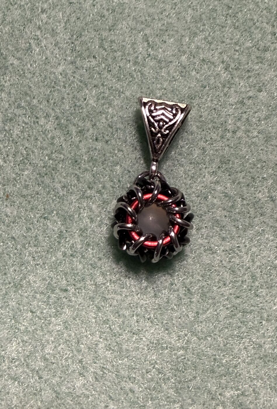 Dragons eye, handmade, stainless steel, chain-male pendant with precious stone centre.