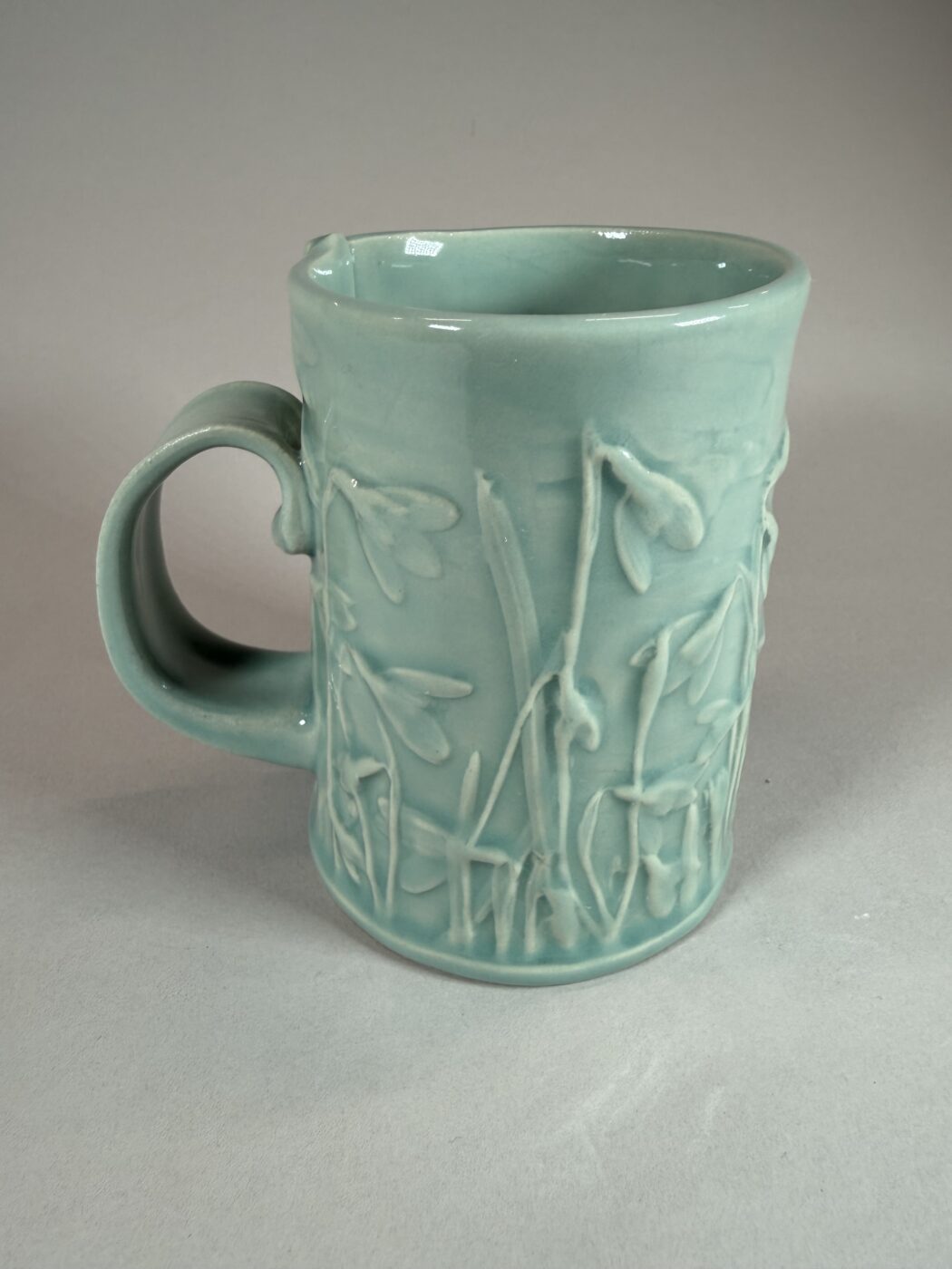 Bring a quiet moment of early spring into your daily ritual with this handmade stoneware mug, delicately adorned with snowdrop relief motifs inspired by my own garden. Each mug is carefully formed and finished by hand, making every piece truly one of a kind-no two will ever be exactly alike, a hallmark of authentic handmade pottery. The softly raised snowdrop design wraps gently around the surface, capturing the fleeting beauty of the first blooms that emerge through late winter frost.