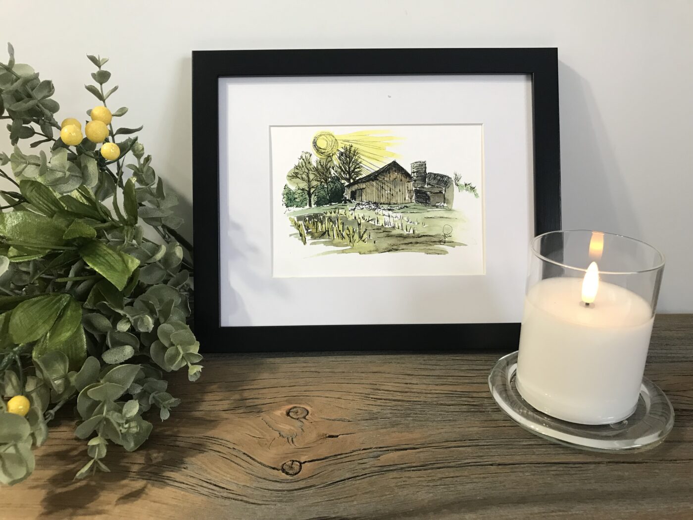 - Framed size (classic black frame; with matte): 8″ x 10″ ($30)