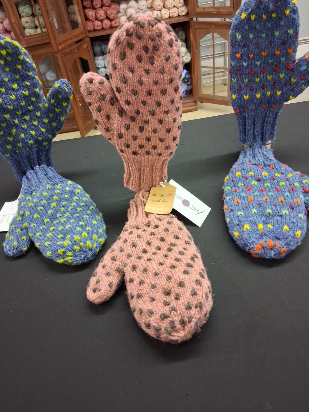 Available in child, ladies or man sizes. Various colours available for the mitten shell and thrum. Contact me for options.