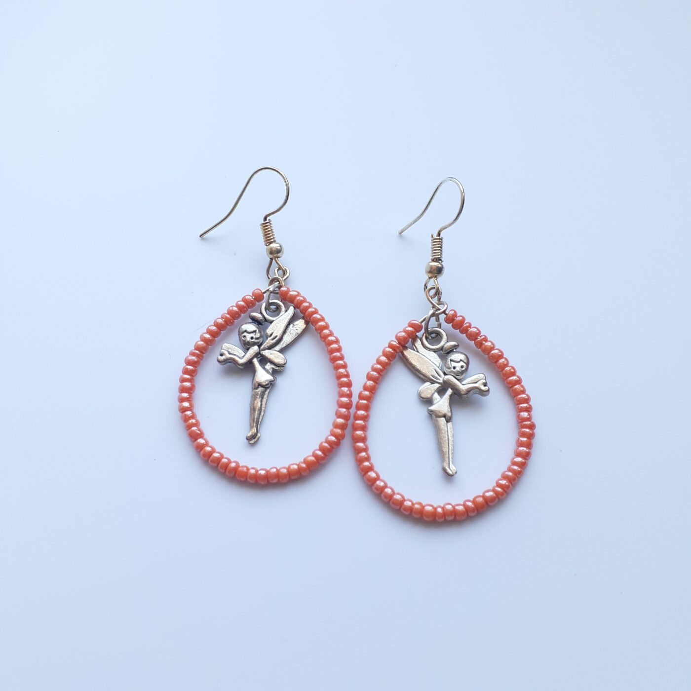 Tinker Bell Inspired Hoop Earrings with Peach Colour Seed Beads
