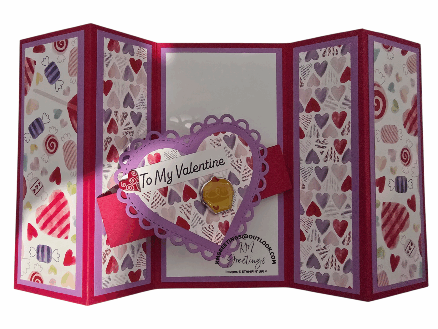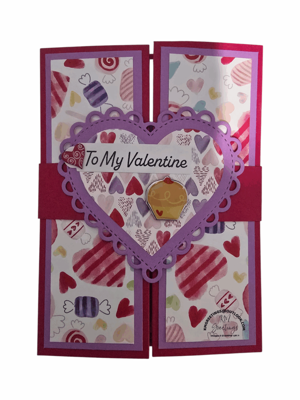 This handmade greeting card is the perfect way to show that special someone you care. This card does not have a message inside allowing you to customize your message. A perfect greeting card for Valentine’s Day. Small embellishments add to the beauty of this card.