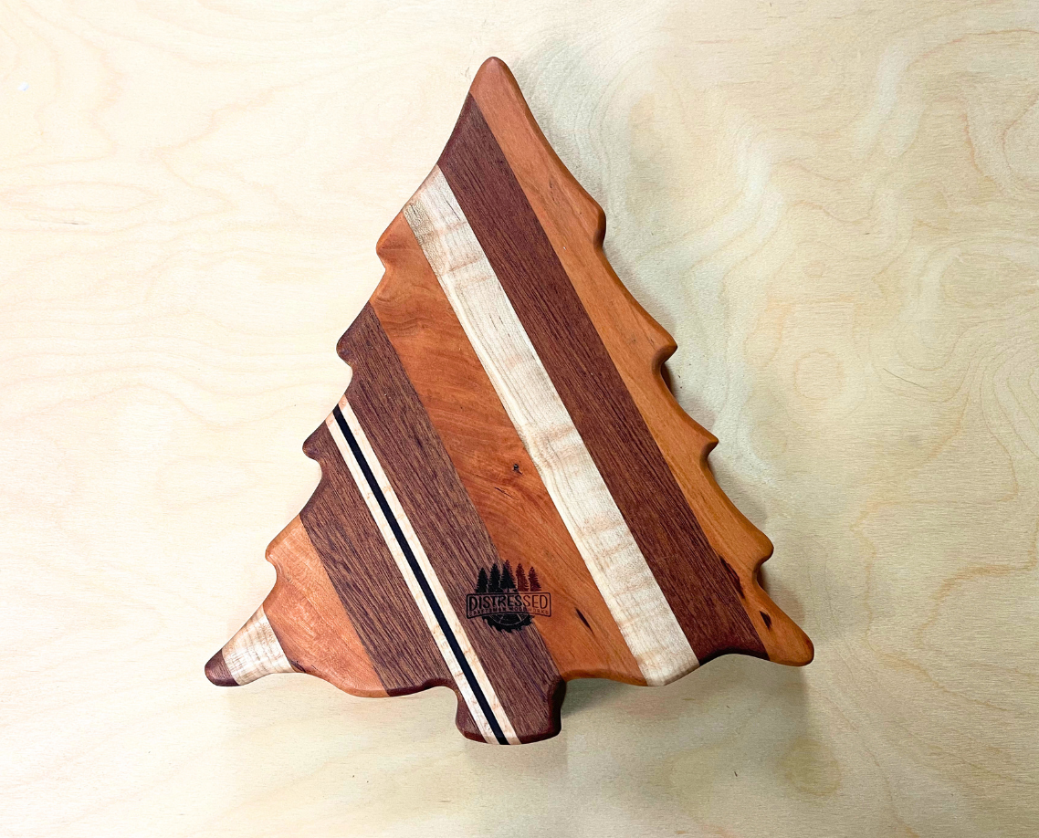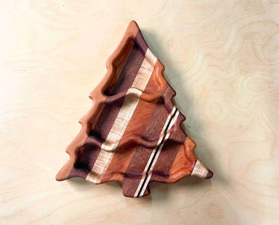 Deck the table with holiday cheer! This festive tray, shaped like a Christmas tree, is perfect for serving treats, snacks, or as a seasonal centerpiece. Fun, functional, and full of holiday spirit. 10 by 11. Wood type may vary, making every piece unique.