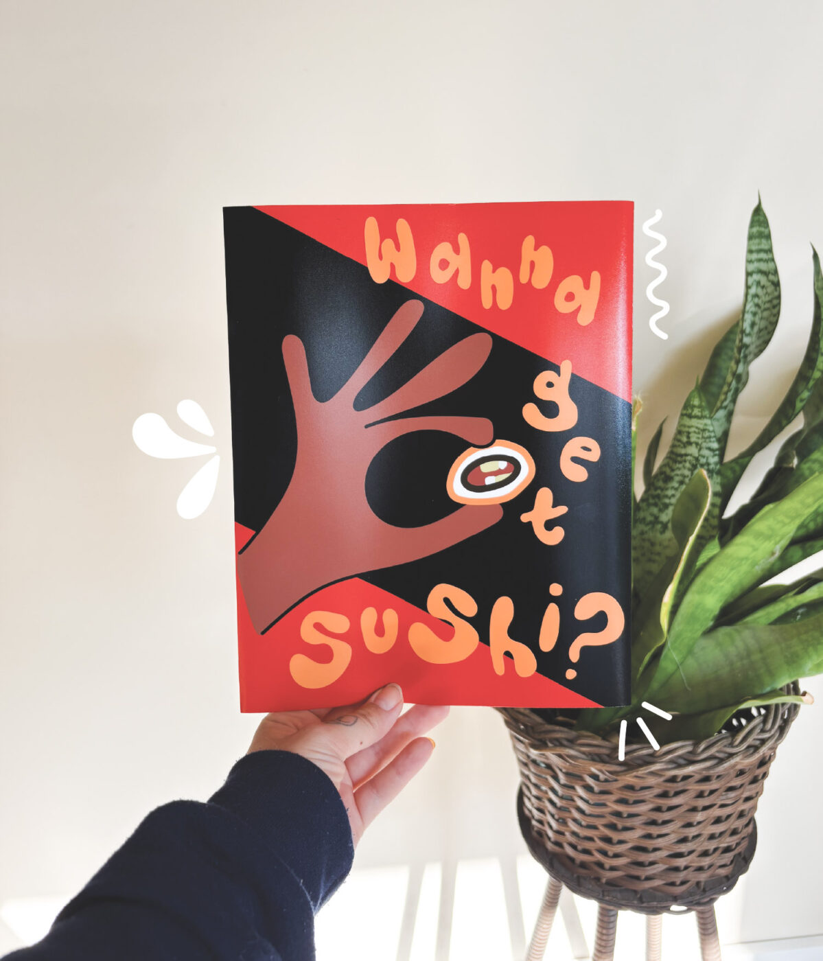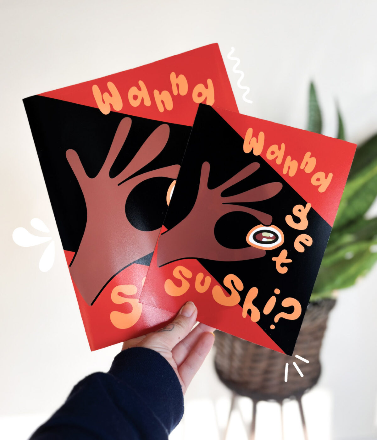 Add some fun flavor to your walls with this quirky illustrated art print featuring a playful hand holding a piece of sushi and the text “Wanna get sushi?”. With its retro-inspired style and foodie charm, this piece makes the perfect accent for your kitchen, dining area, or gallery wall—and a thoughtful gift for any sushi lover!