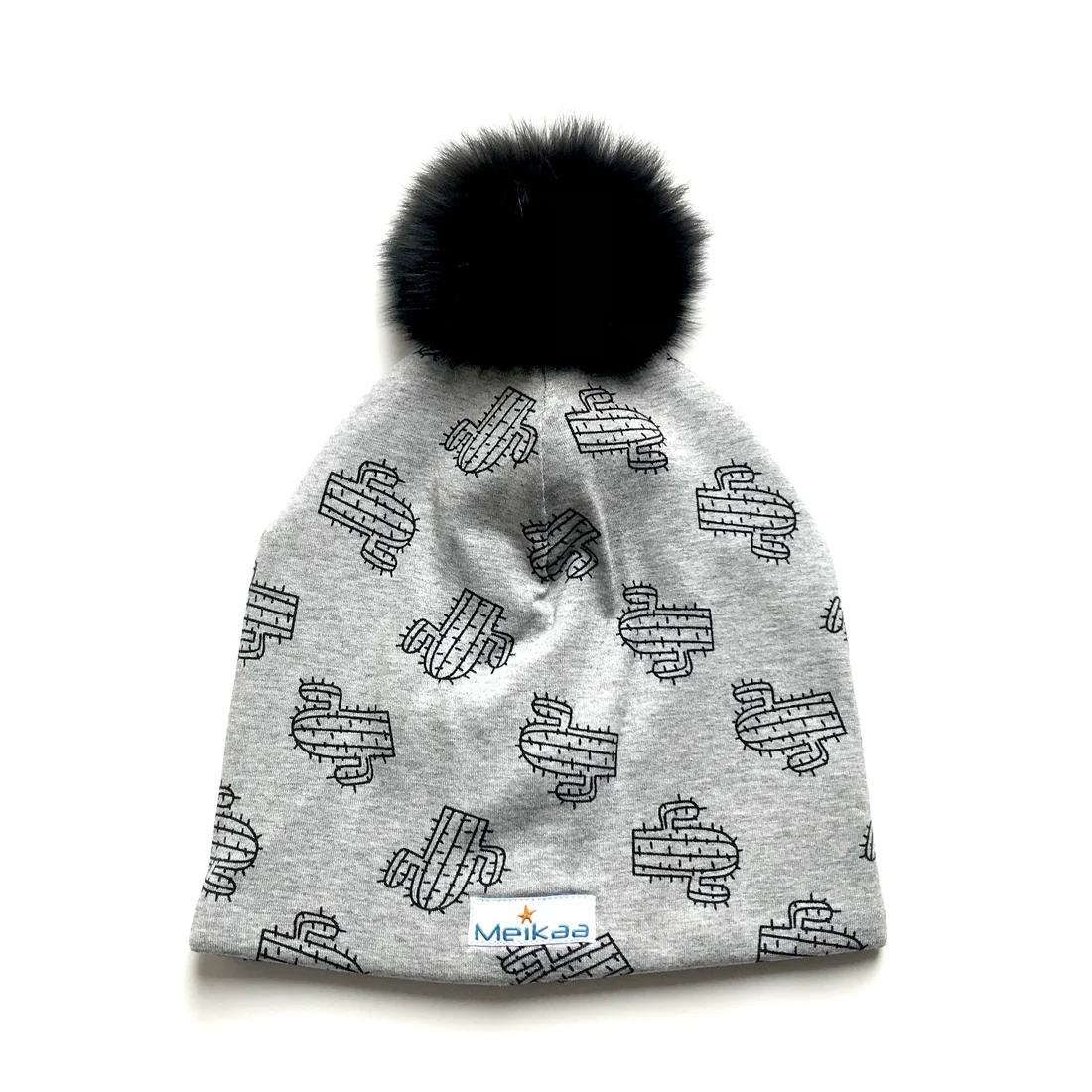 Winter Bamboo Grey Pattern Hat with Recycle Fur Pompom