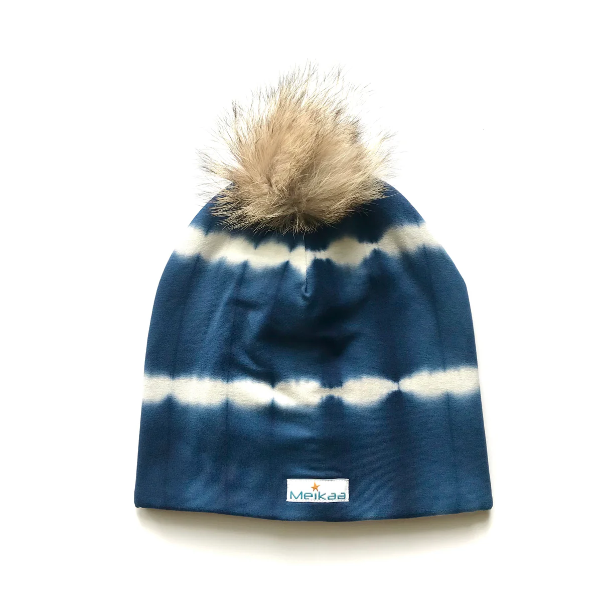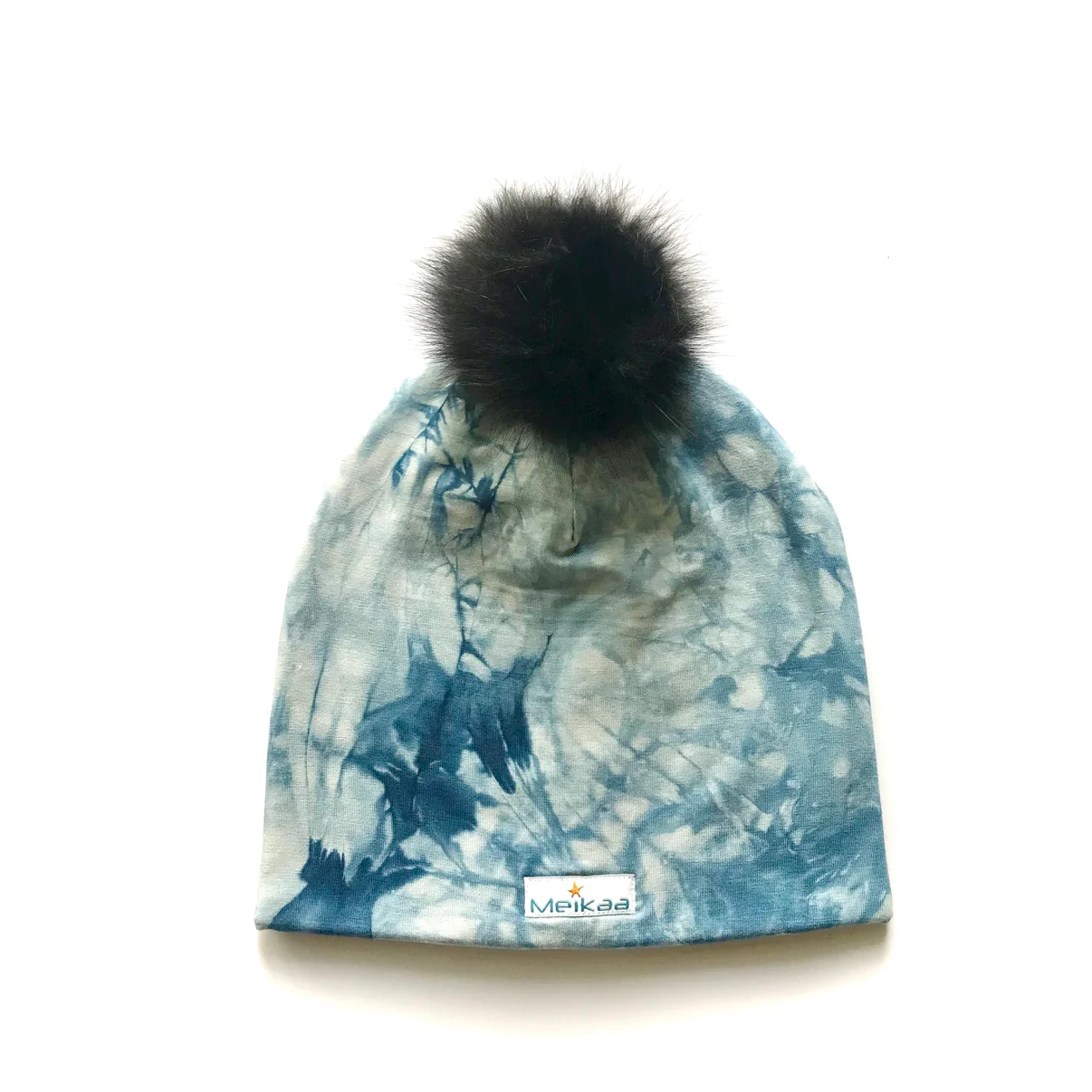 Winter Tie Dye Hat with Recycle Fur Pompom